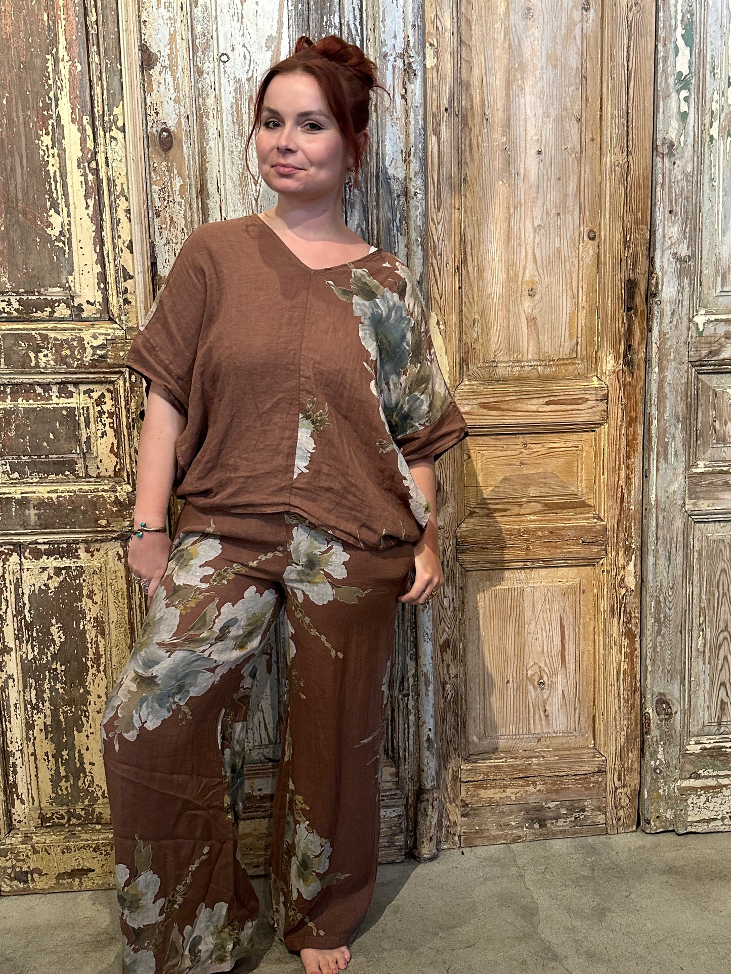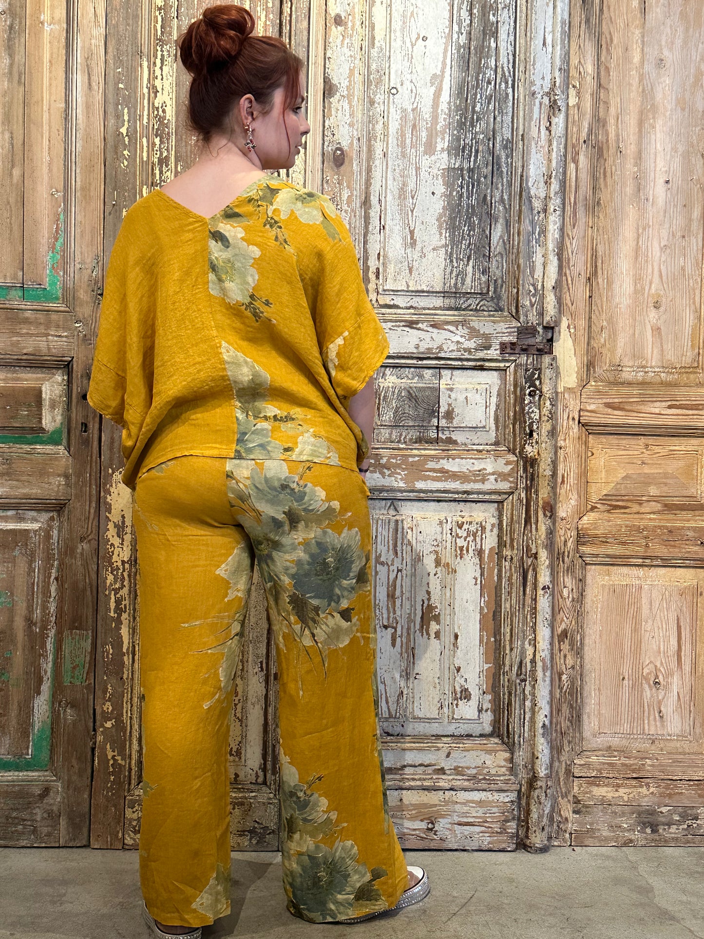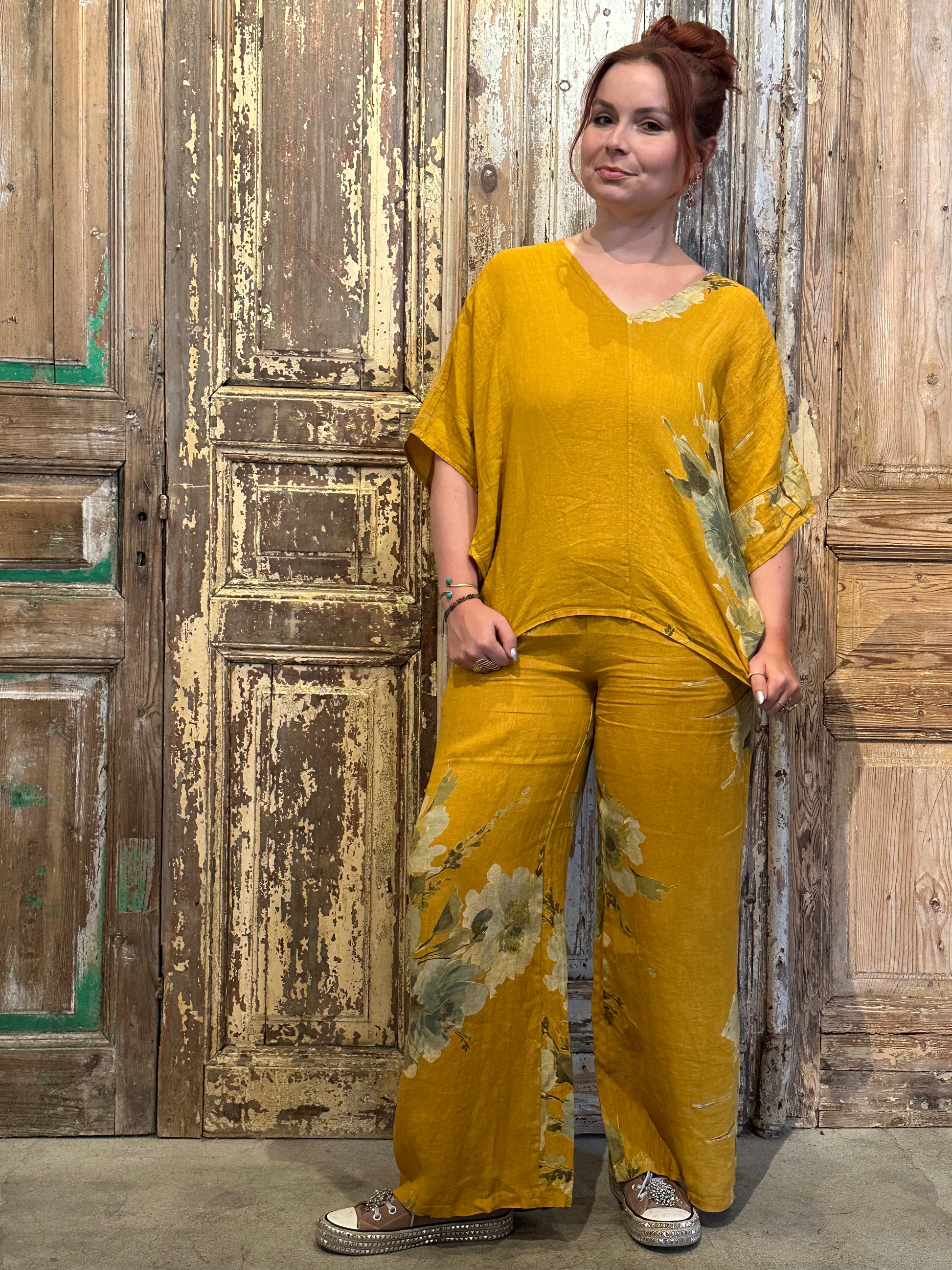 Dive into effortless style with our Double V Top! This playful 100% linen piece features a gorgeous large floral print that's sure to turn heads. The loose fit keeps you comfy while the double V neckline adds a flirty touch. One size fits most, and it's proudly made in Italy for that touch of European craftsmanship. Perfect for sunny days or vacation vibes!