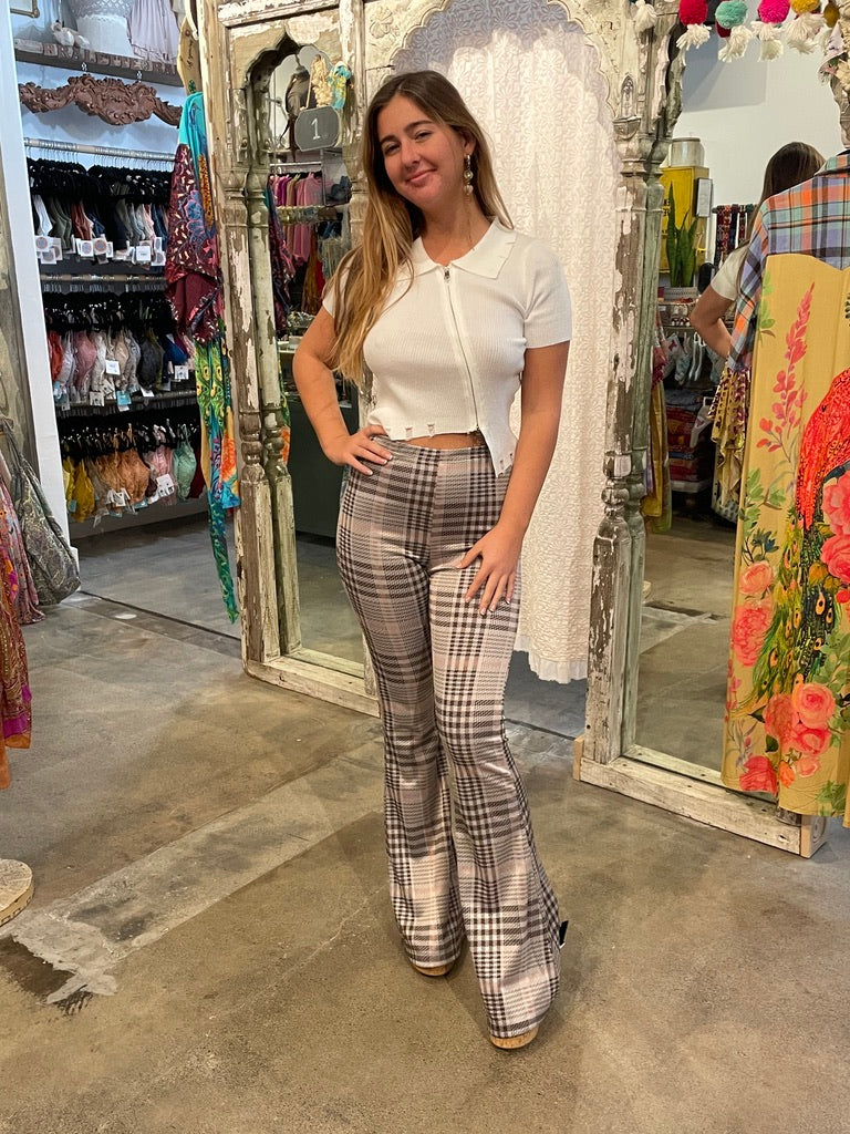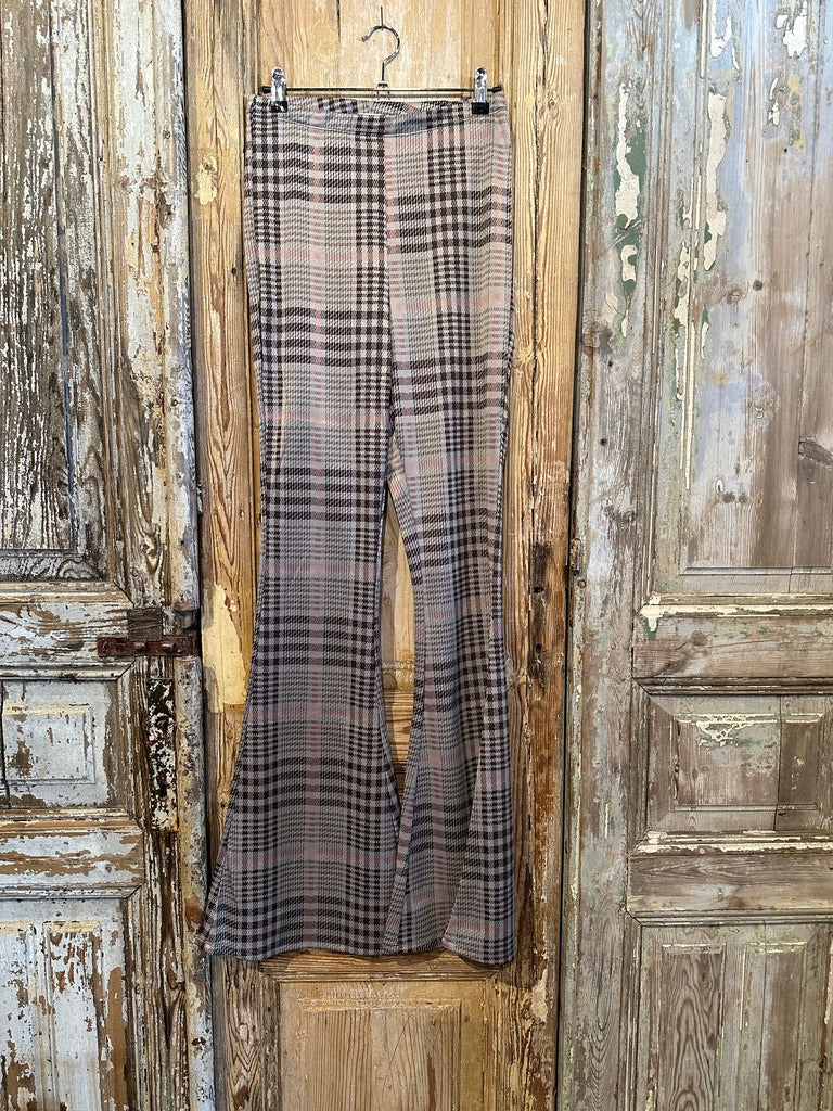 Dance the night away in these throwback 70's Plaid Knit Bellbottoms! They're super stretchy, flared out, and have an elastic waistband to keep you dancing all night long. Plus, the vintage faded plaid makes them easy to mix and match with another fun print. Let's get groovy!