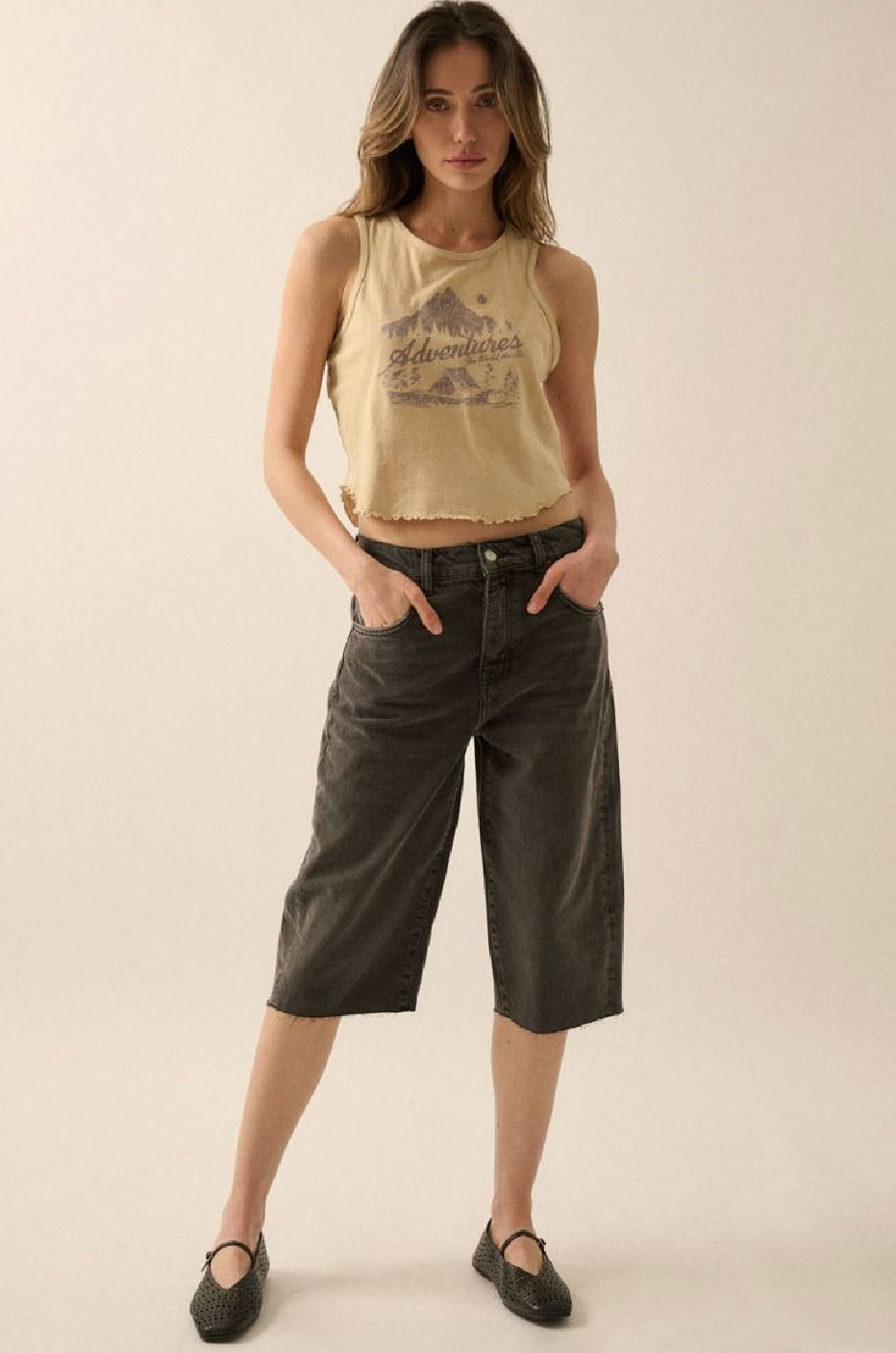 For the wild hearts and weekend wanderers, the Adventures Tank is your new go-to for chasing sunsets and making memories. Made from 100% cotton, this mineral-washed crop tank serves up vintage camping vibes with a comfy, relaxed fit that’s made to move with you.