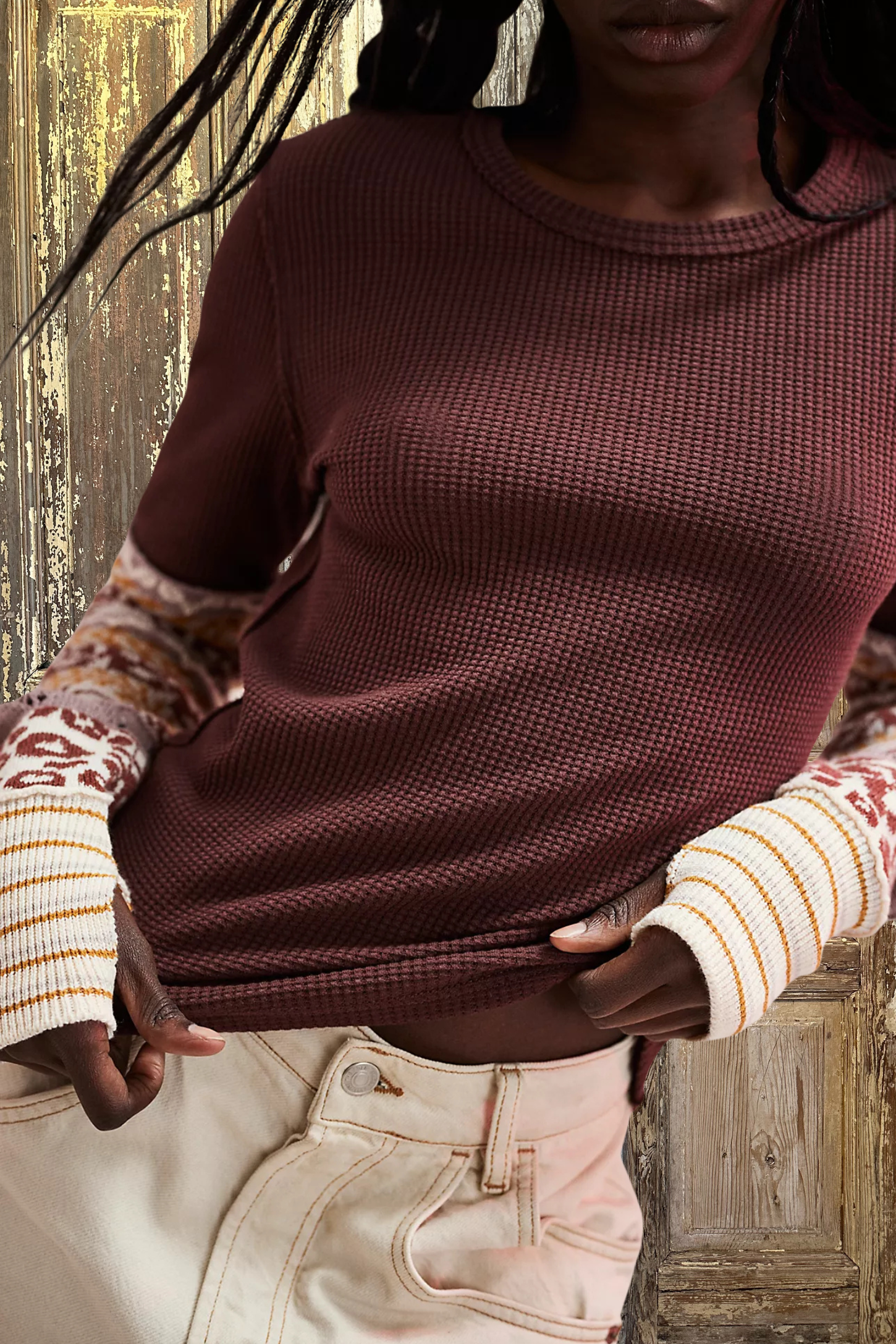 The All In Cuff by Free People takes your everyday top and gives it that signature boho twist. Made from soft, textured cotton, it features a relaxed fit with long sleeves, exposed seams, and those iconic mixed-print cuffs that bring all the color and soul. With thumbhole detailing and a lived-in feel, this top is made for layering, lounging, or adding a little Free People magic to your favorite jeans or maxi skirts. Effortless, artsy, and full of personality—it’s the top that turns a simple look into something unforgettable. 🌼✨