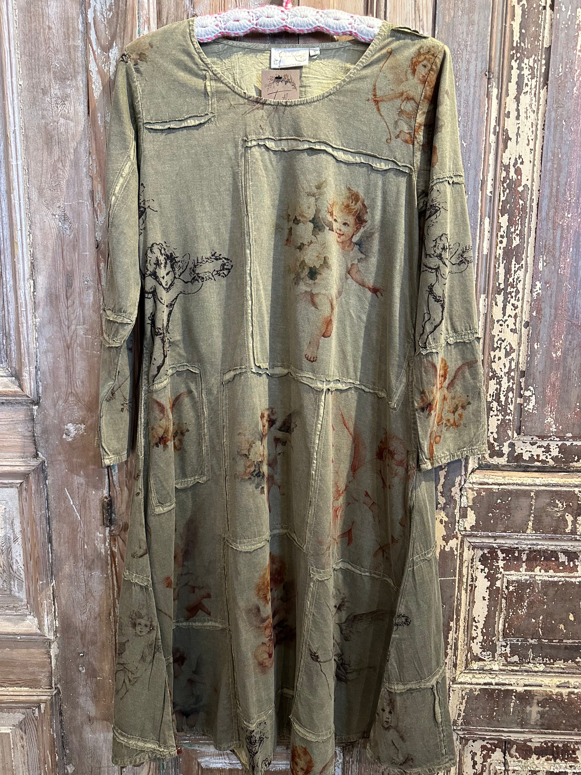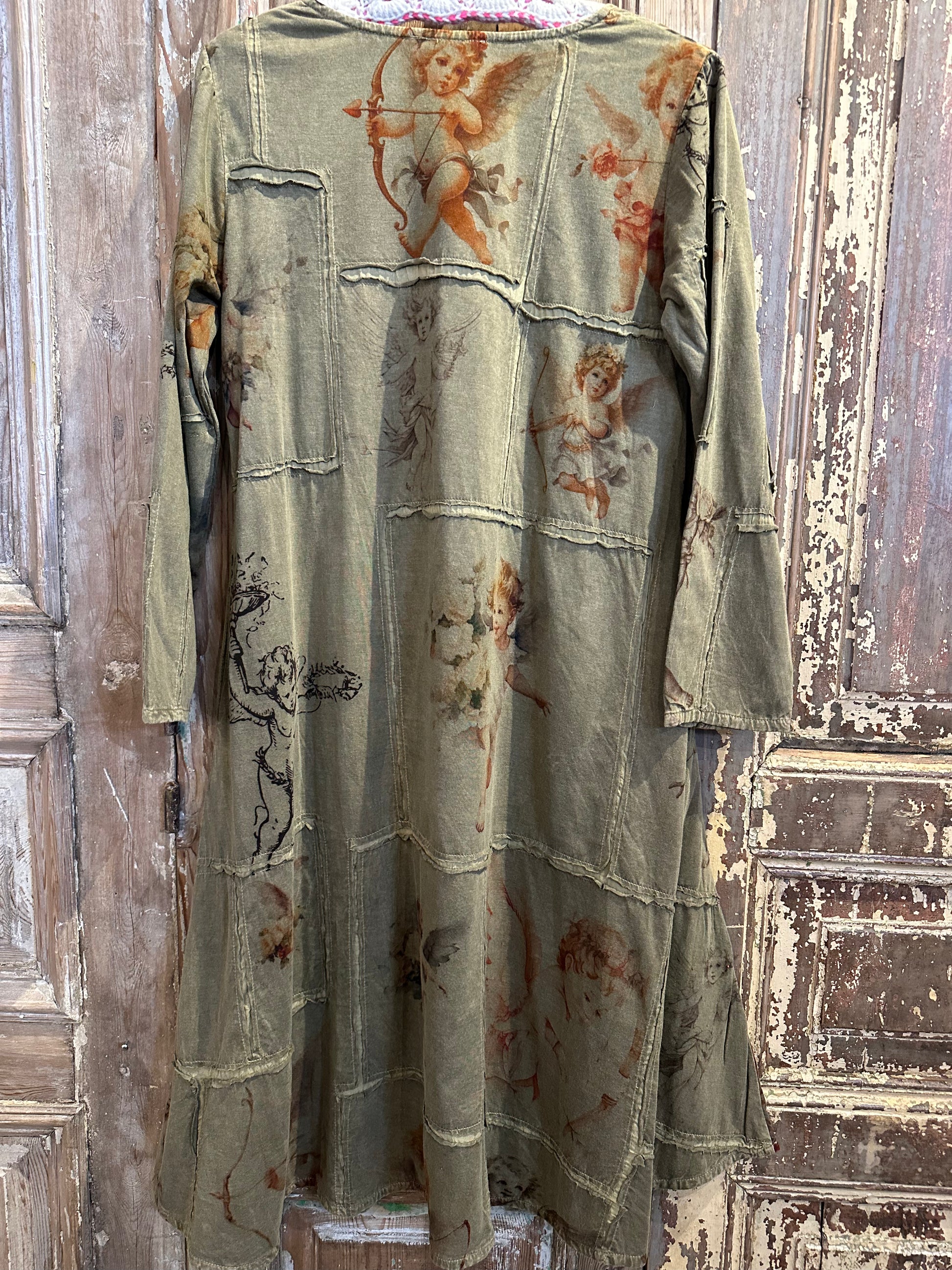 The Angel Patchwork Dress is pure vintage magic — a heavenly creation stitched with love and soul 💫 Made from 100% cotton, each dress is made with a randomly patched fabric, meaning no two are ever the same (that’s the beauty, sister 🌈). We adore the cherub angel print that gives it that dreamy, vintage vibe — like something straight out of a romantic daydream. With its scoop neckline, long sleeves, and flowy oversized fit, this midi-length wonder feels as comfy as it looks divine.
