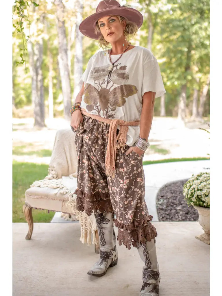 Introducing our At First Sight Bloomer in a rich chocolate hue. Made from 100% cotton, these bloomer pants feature a delicate lace edge and an elastic waistband for ultimate comfort. Embrace the cottage core trend and pair with our Jaded Gypsy line or upcycled flannels for a super cute, layered look. Say hello to your new favorite piece at first sight.