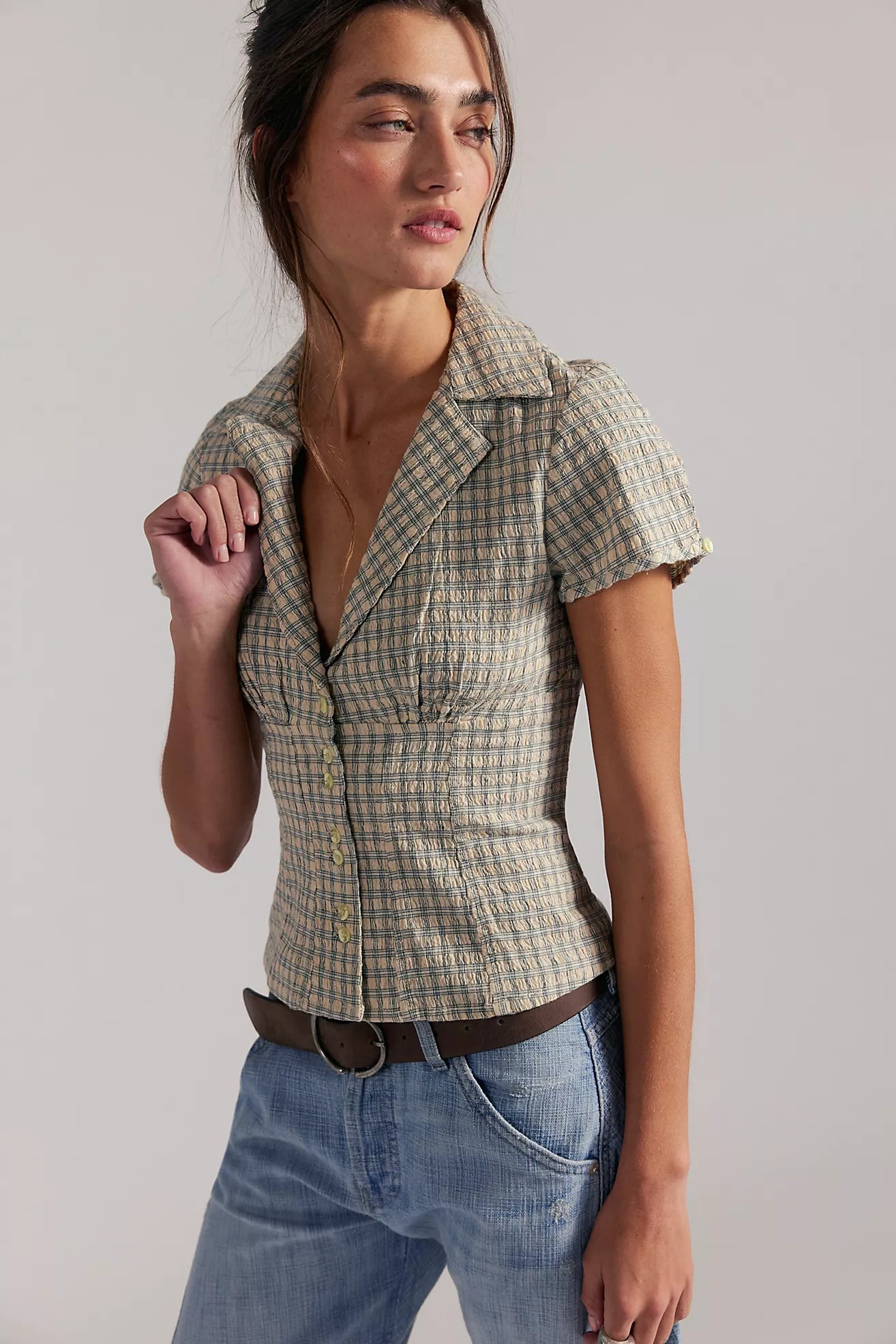 🌿 Camp Crush Shirt by Free People — vintage inspired button front top with a flattering feminine fit