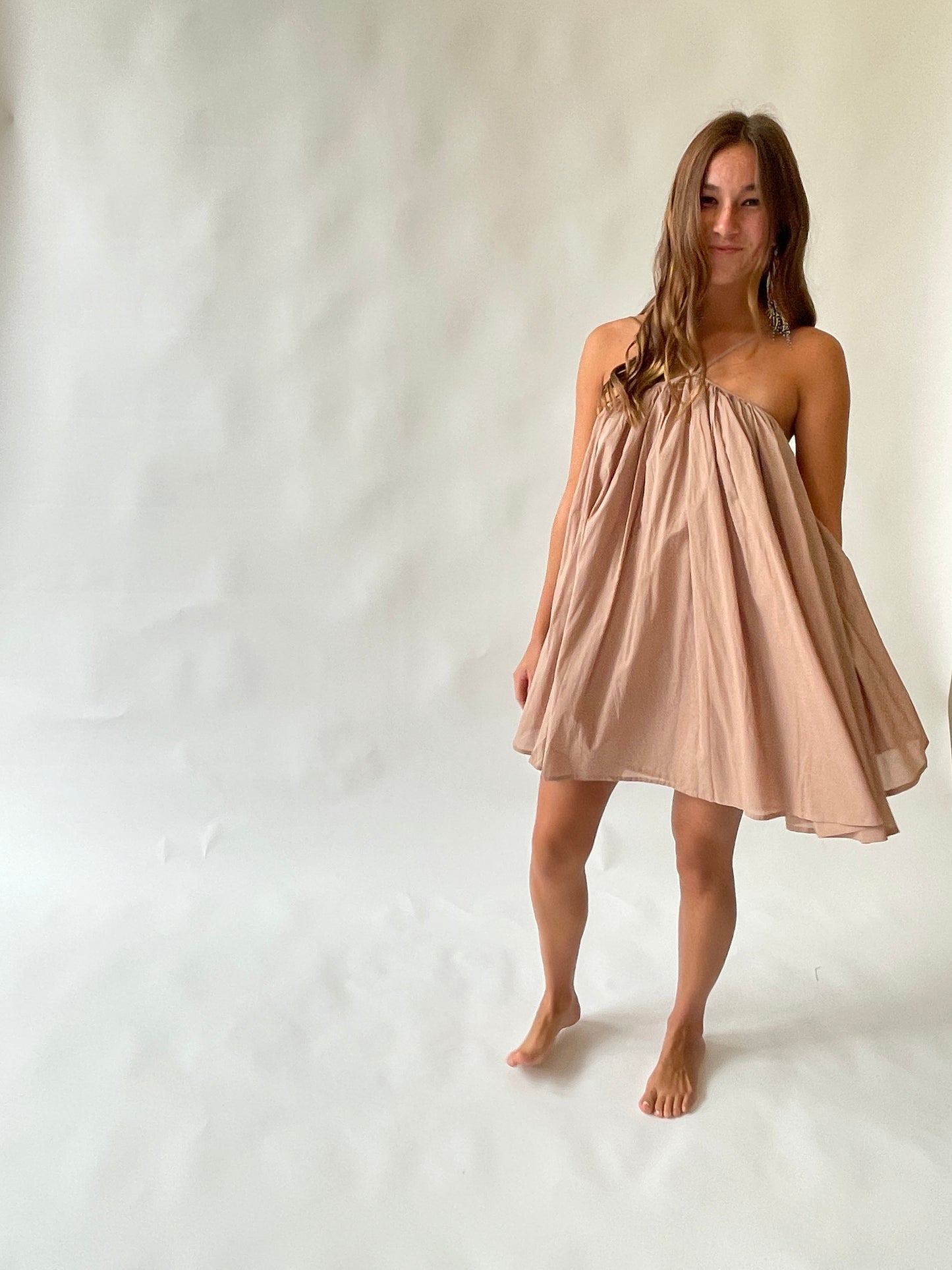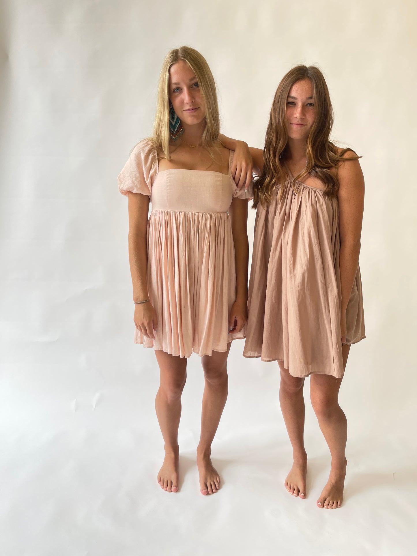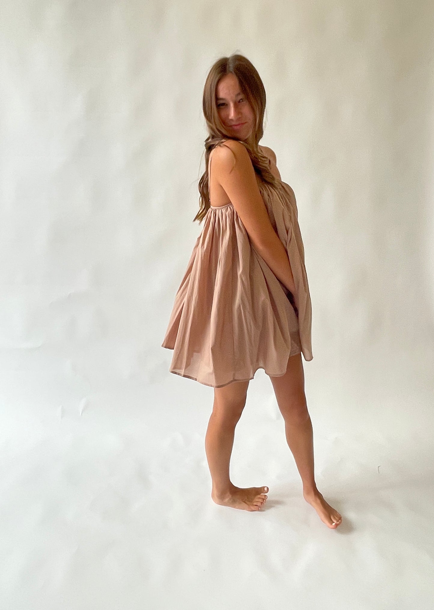 Girly Donna Dress is 100% cotton and fully lined.  Zipped back with adjustable V straps.  The gathered top creates a super simple loose silhouette.  Baby doll style dress that's easy to wear on a casual day or dressed up to a girly function.  This can be worn as a micro mini baby doll dress with our cute gauze or denim shorts.  Wear this and feel extra girly for your girly function.