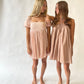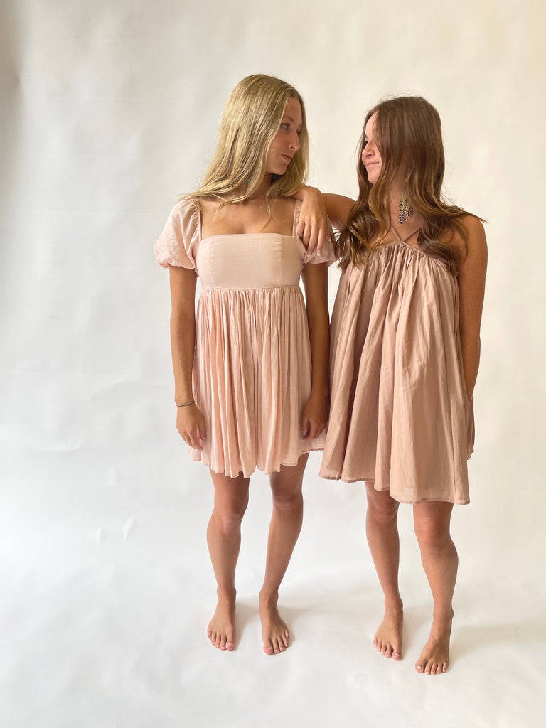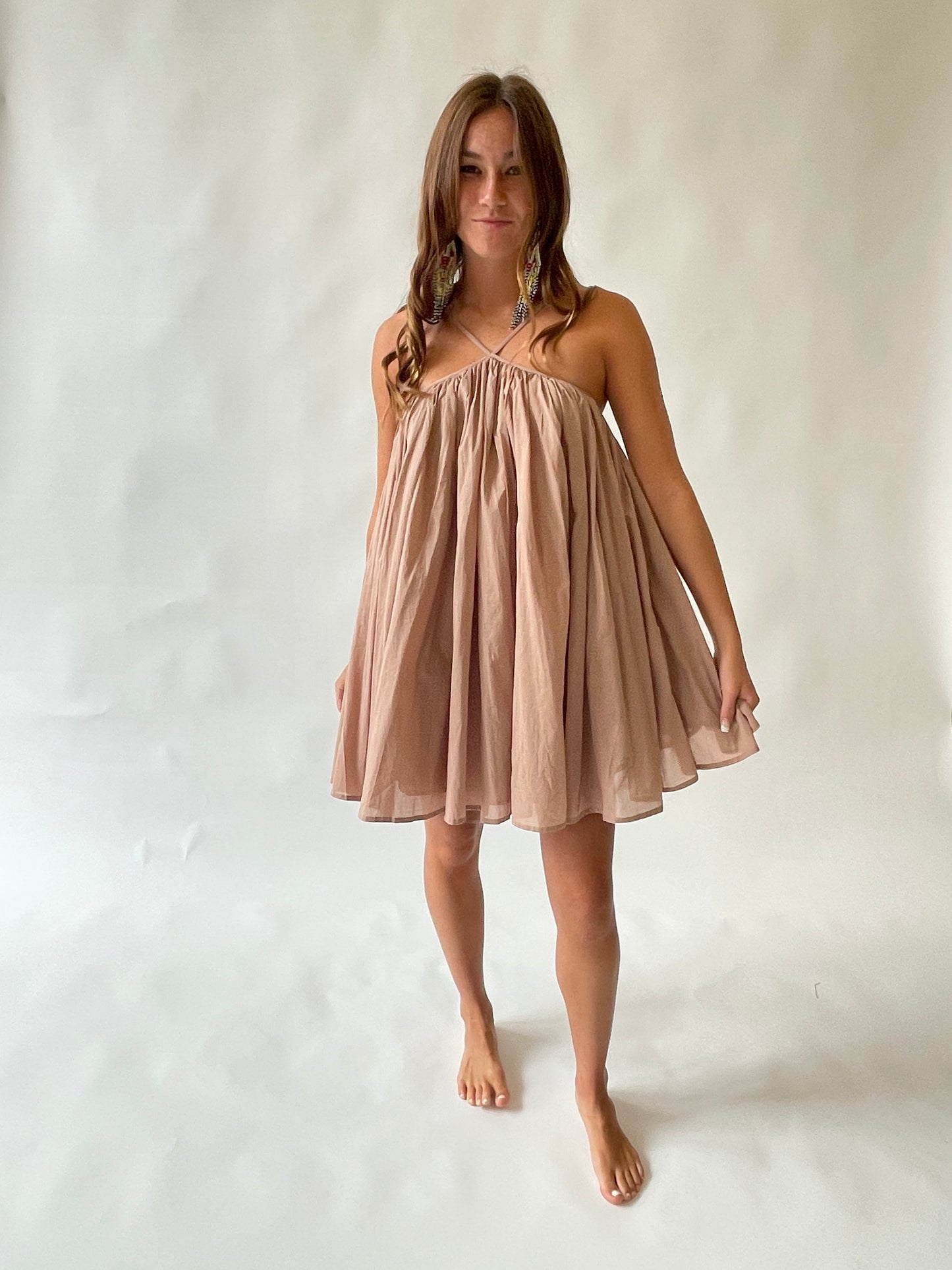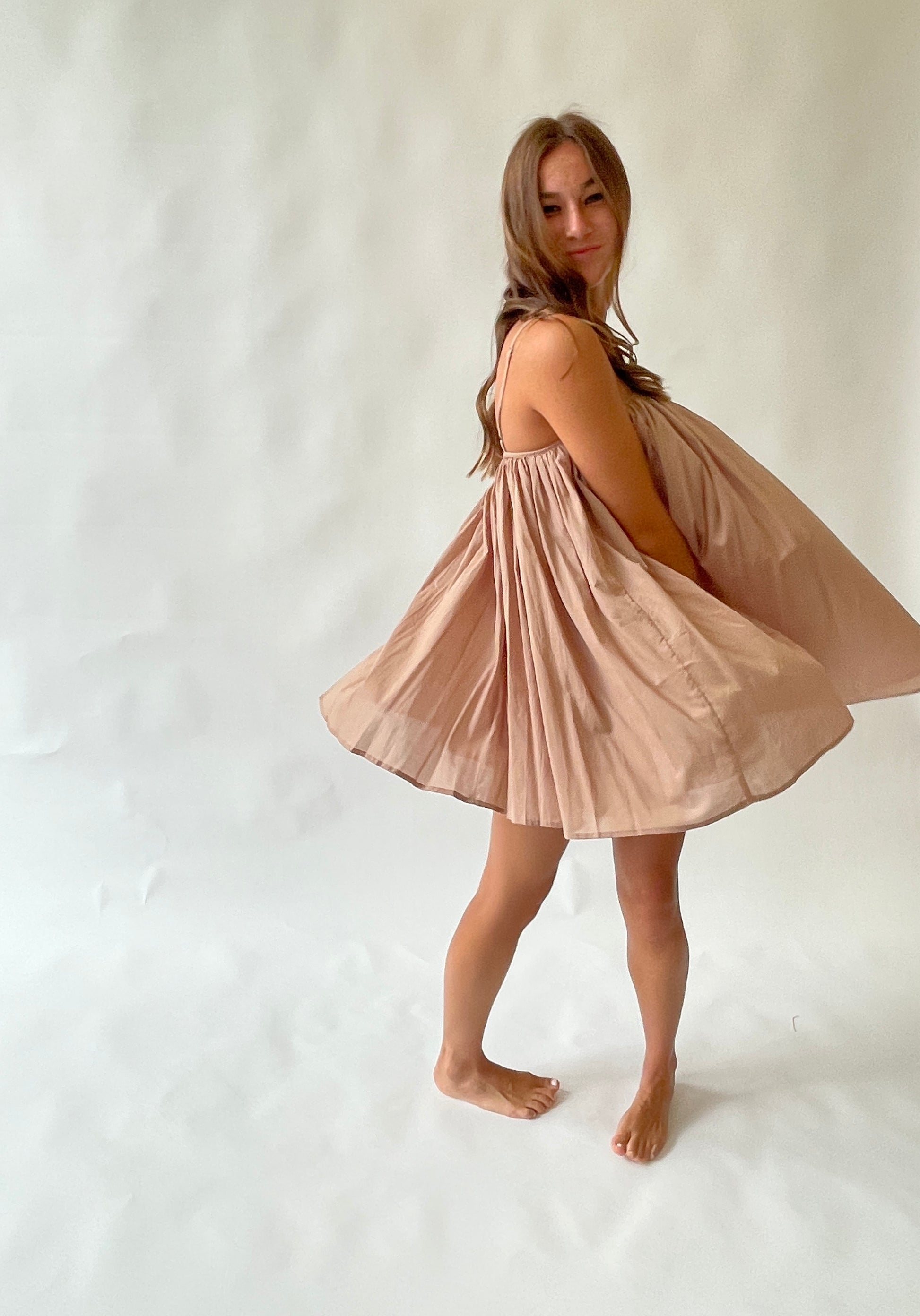 Girly Donna Dress is 100% cotton and fully lined.  Zipped back with adjustable V straps.  The gathered top creates a super simple loose silhouette.  Baby doll style dress that's easy to wear on a casual day or dressed up to a girly function.  This can be worn as a micro mini baby doll dress with our cute gauze or denim shorts.  Wear this and feel extra girly for your girly function.