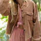 Effortless Edge: Stay effortlessly cool in this oversized corduroy jacket, blending grunge and boho vibes with a raw hemline for that perfectly undone look.