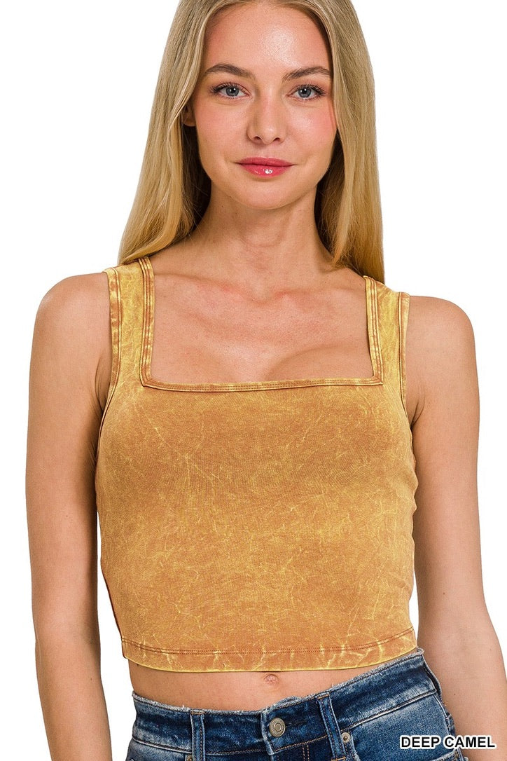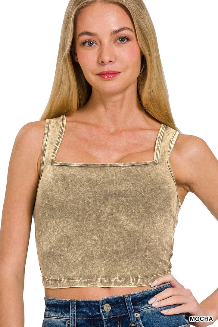 Introducing our Crop Square Neck Tank! Made from 100% cotton with a flattering mineral wash, this versatile piece can be worn alone or as a layer. Its square neckline and fitted design make it a must-have for any wardrobe. Get ready to turn heads and feel confident in this stylish and comfortable tank!
