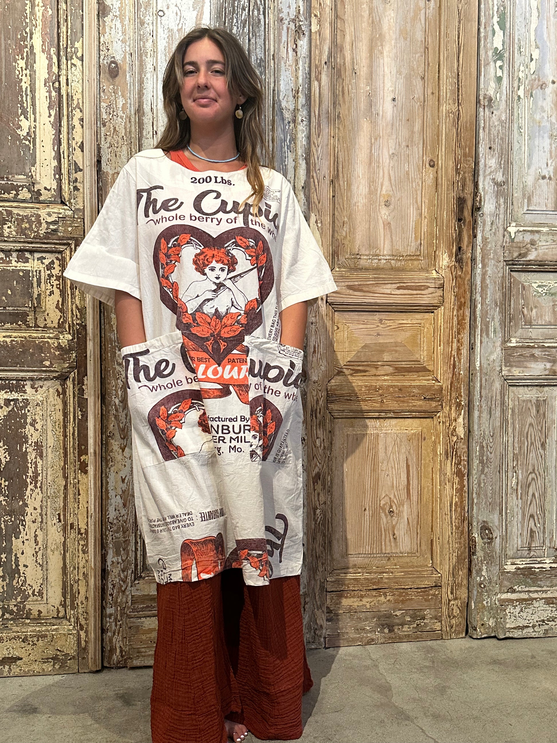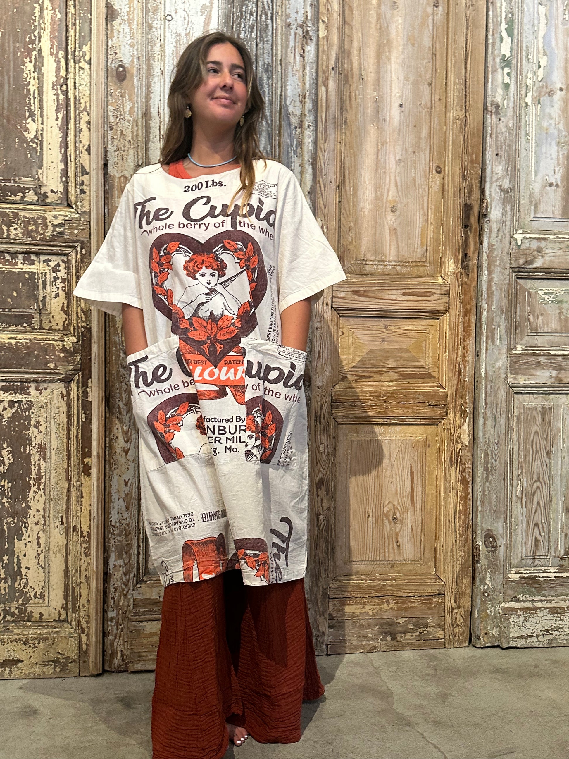 Say hello to your new favorite throw-on-and-go piece: the Cupid Dress. Made from 100% breathable cotton, this beauty channels the charm of vintage flour sack fabric—soft, lightweight, and full of character.