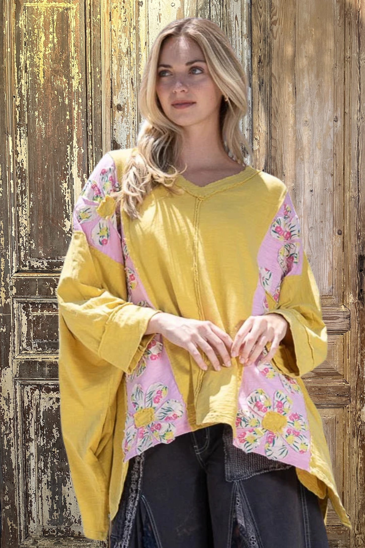 Add some spice to your closet with this fun Daisy Applique Tee! This tee has long sleeves, an oversized fit, and a one-of-a-kind daisy applique on the front and back, making it a guaranteed head-turner. With a round neckline and exposed raw stitching, it's a perfect blend of trendy and offbeat. And trust us, it's so comfy, you won't want to ever take it off! We're obsessed with the mineral wash for that cozy boho feel, perfect for the season.