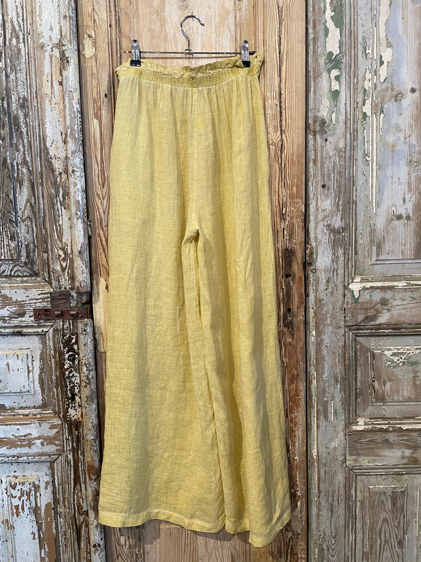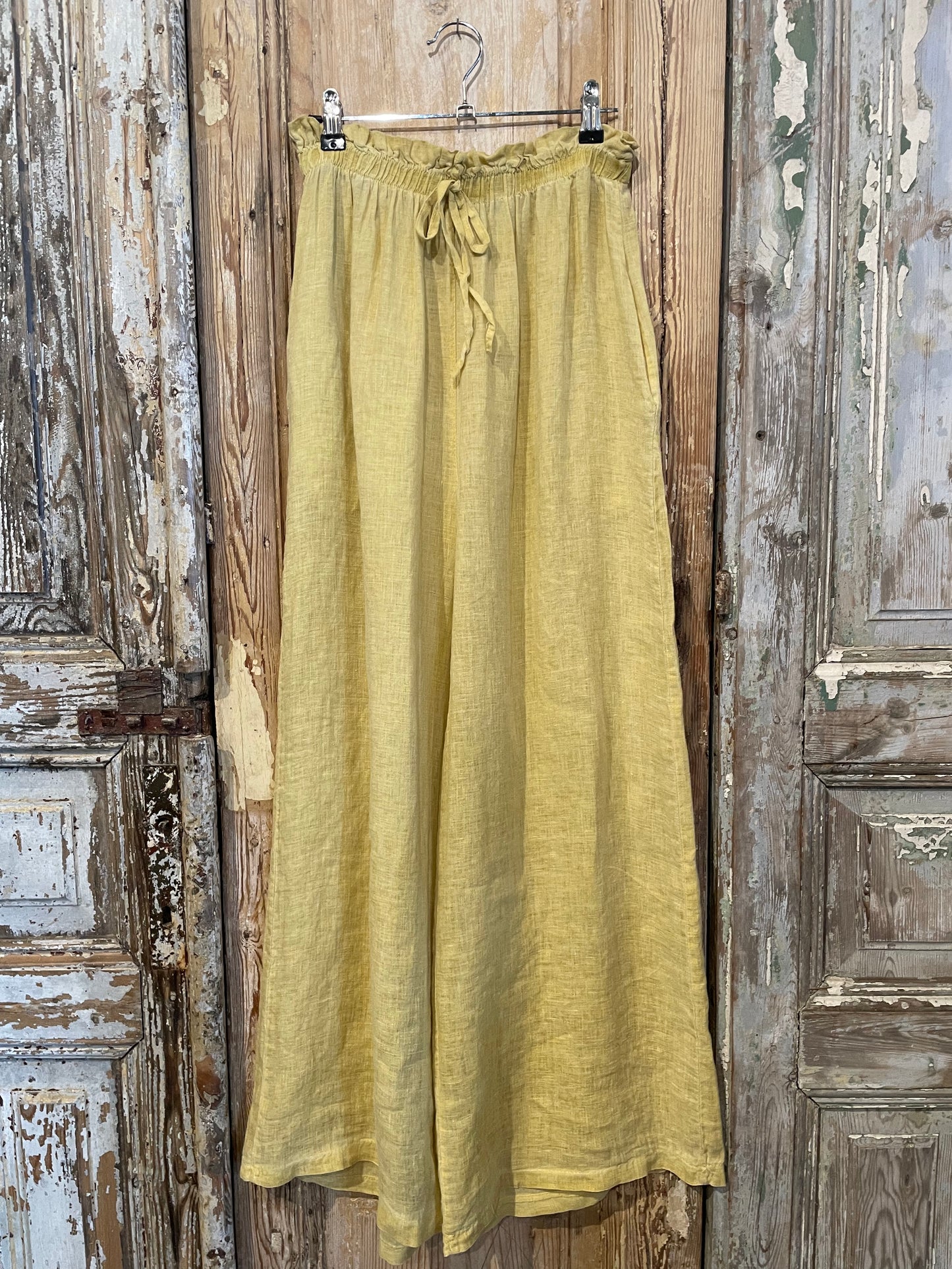 Upgrade your wardrobe with our luxurious Drawstring Wide Linen Pants. Designed with wide legs, a flowy fit, and a drawstring and elastic waistband for easy wear. Effortlessly pair with our linen tops and tunics for a timeless, Italian-made look. One size fits all.