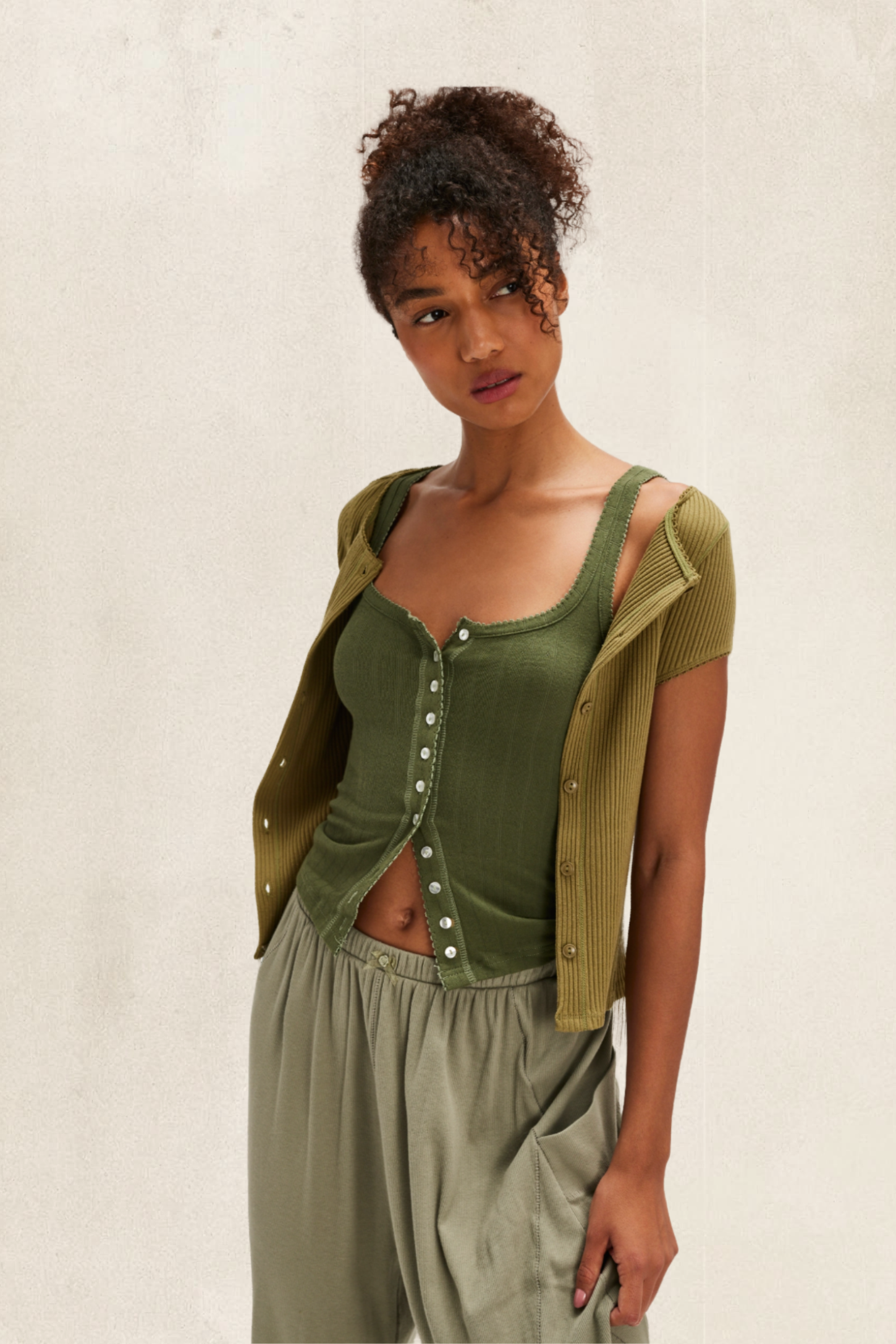 Why we love it: it’s endlessly versatile — wear it solo on warm days, layered over a short-sleeve tee when it’s cooler, or paired with cozy lounge pants or your favorite cutoffs for that effortless, lived-in Free People vibe. 🌿💫