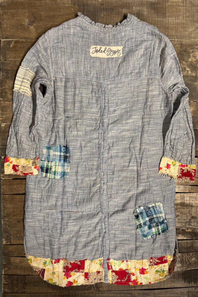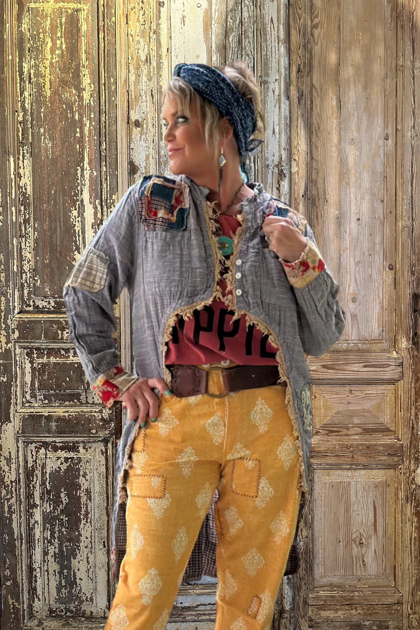 Featuring a dramatic hi-low silhouette, random patchwork details, and lace-edged trim, this jacket is full of personality and texture. The front button-down design lets you wear it open or closed, while the flowy cut gives it movement that turns heads with every step. Whether you’re layering it over denim or dressing it up with a maxi skirt, this jacket adds instant wow to your look.