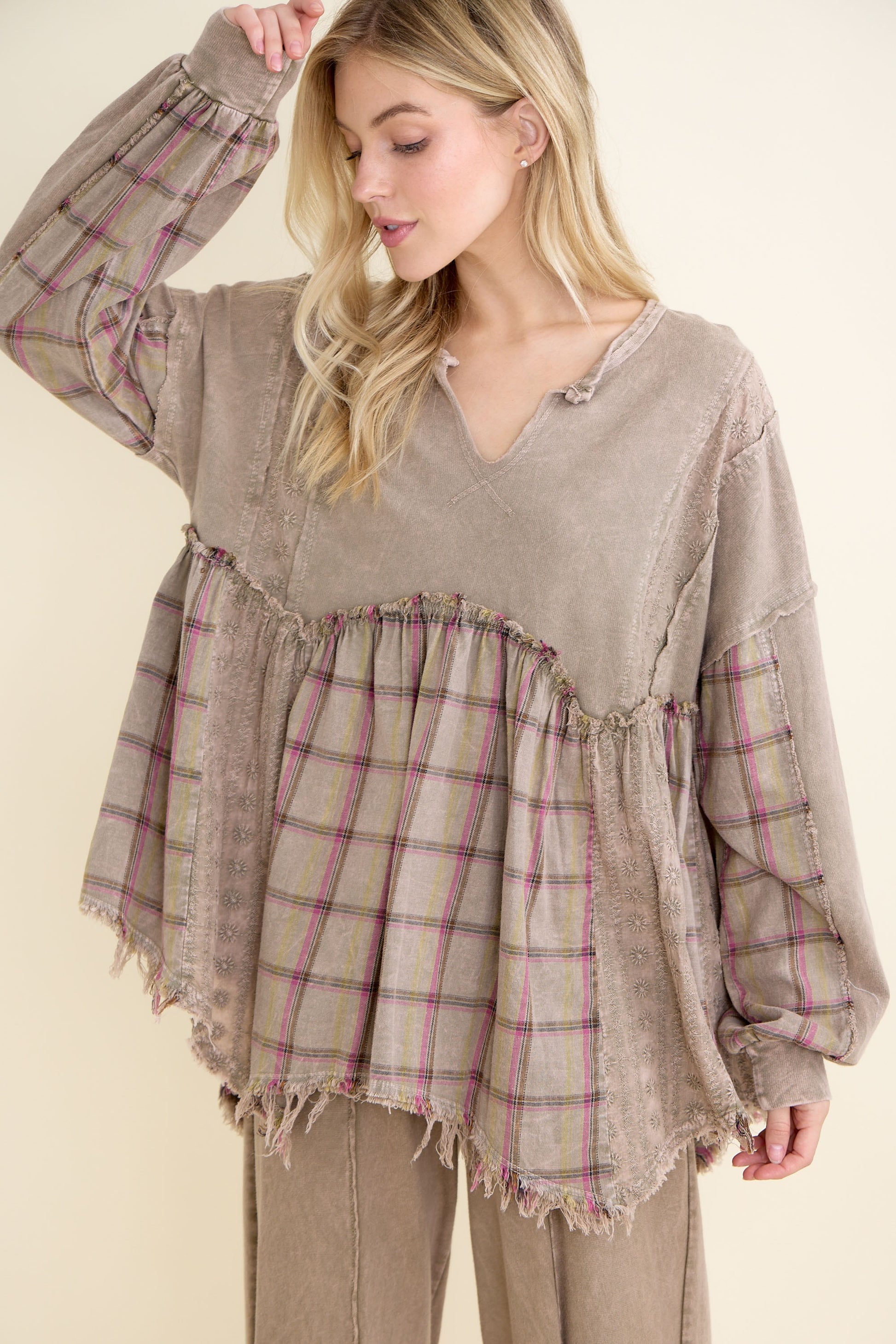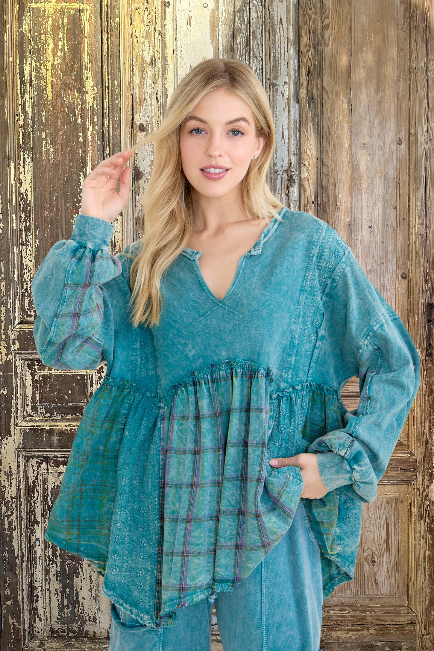 The Plaid & Thermal Top is your new go-to for laid-back, boho fall style. Made from soft  cotton and mineral washed for that perfectly broken-in look, this oversized cut v-neck features plaid inserts that add a fun, vintage twist. The relaxed fit and cozy texture make it comfortable and effortlessly cool — ideal for layering or styling solo. Pair it with a mini skirt and boots for a flirty fall look or with funky flares for that signature Trestles hippie vibe.