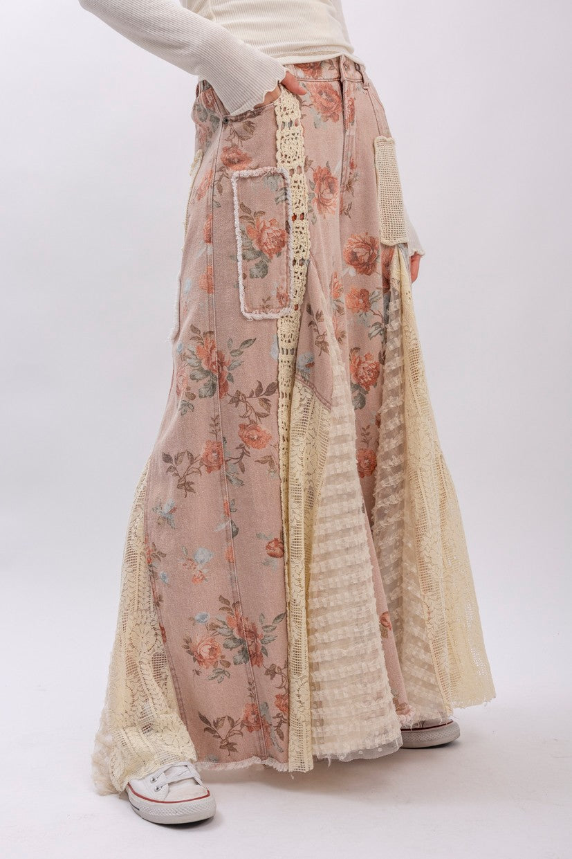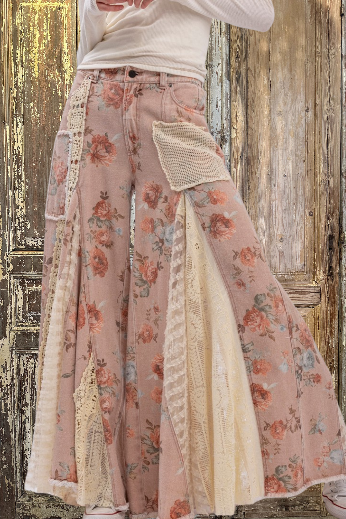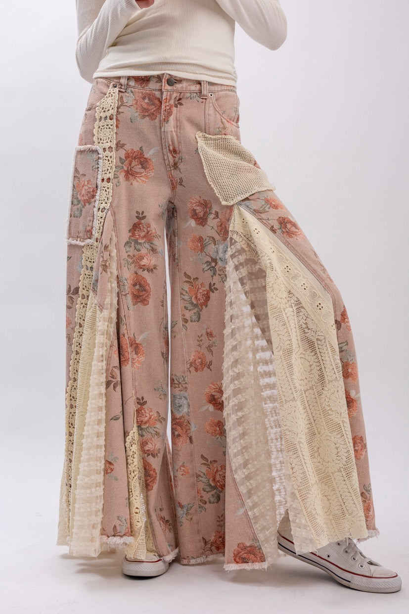 Designed with a pretty floral print with an elastic back waistband for all-day comfort, these soft, lightweight jeans feature lace inserts in the front and back that add a sweet flow and movement as you walk. The lace patch details give them that artsy, one-of-a-kind vibe while keeping the fit easy and flattering.