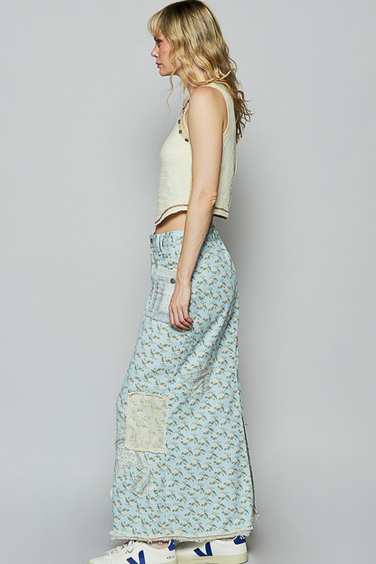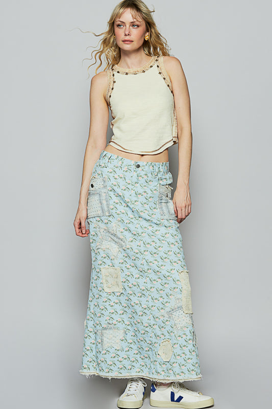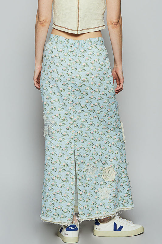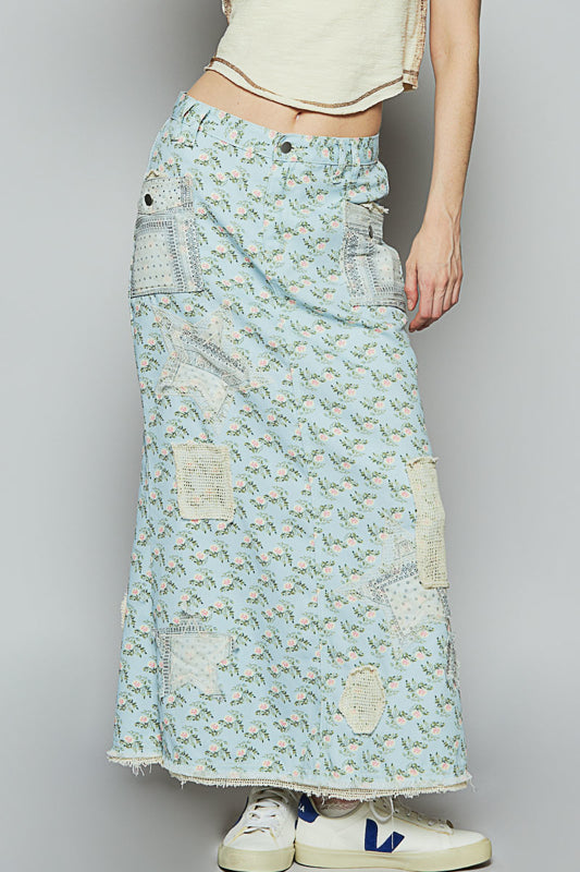 Woven Floral Skirt with Lace Patches – Pretty, Boho, and Effortlessly Chic