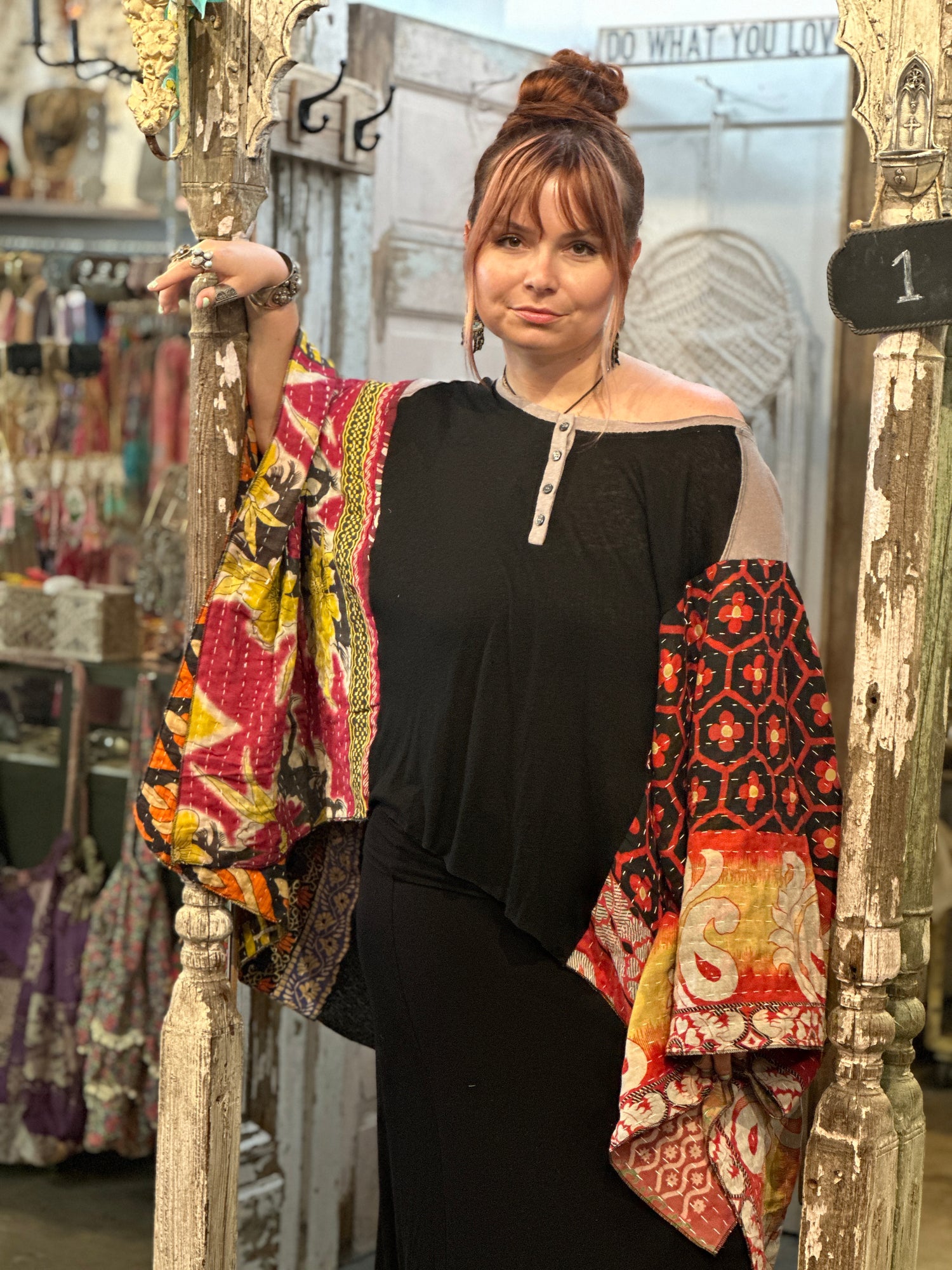 To add sustainablity to our store Aileen up cycles found graphic tees, flannels & denim for babies & adults and make them new again!