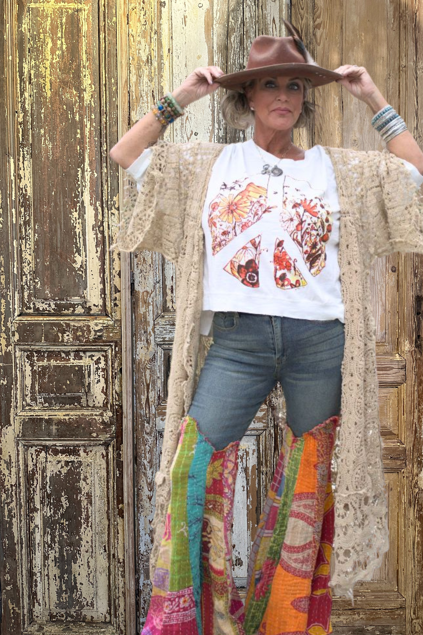 Aratta creates stunning, vintage-inspired kimonos with unique prints, each reflecting the creative touch of designer Susanna Karapetyan and a regal, one-of-a-kind style. We love blending these kimonos with our hippie vibes to achieve a beautifully majestic hippie look.