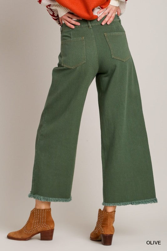Look effortlessly stylish with Frayed Front Pockets Pants. Featuring a frayed hemline, trendy front pocket detail, and classic back pockets, these beach-ready pants will have everyone in San Clemente asking where you got them. A wide leg ensures comfort and style. Get ready to fall in love with a new look!