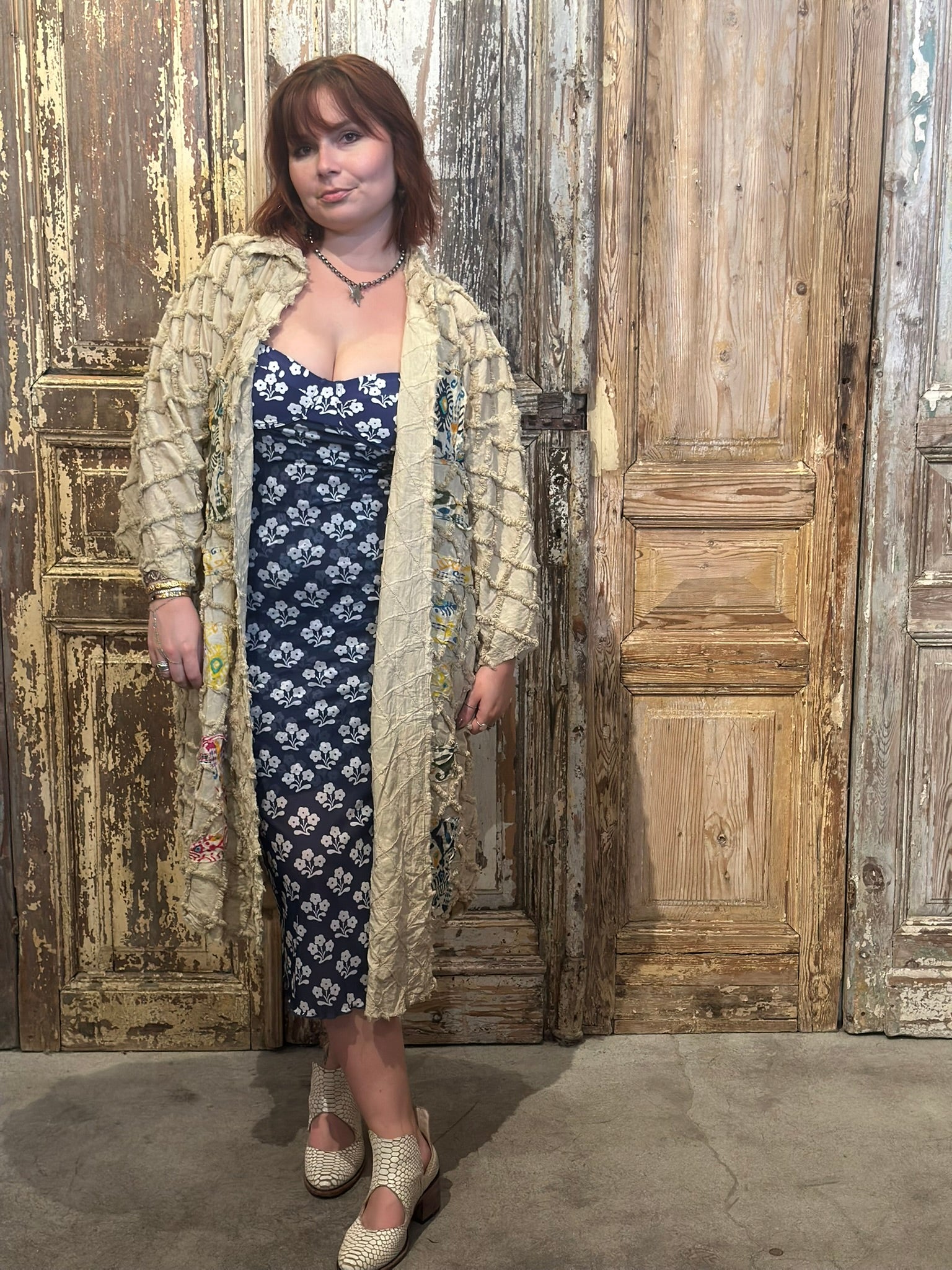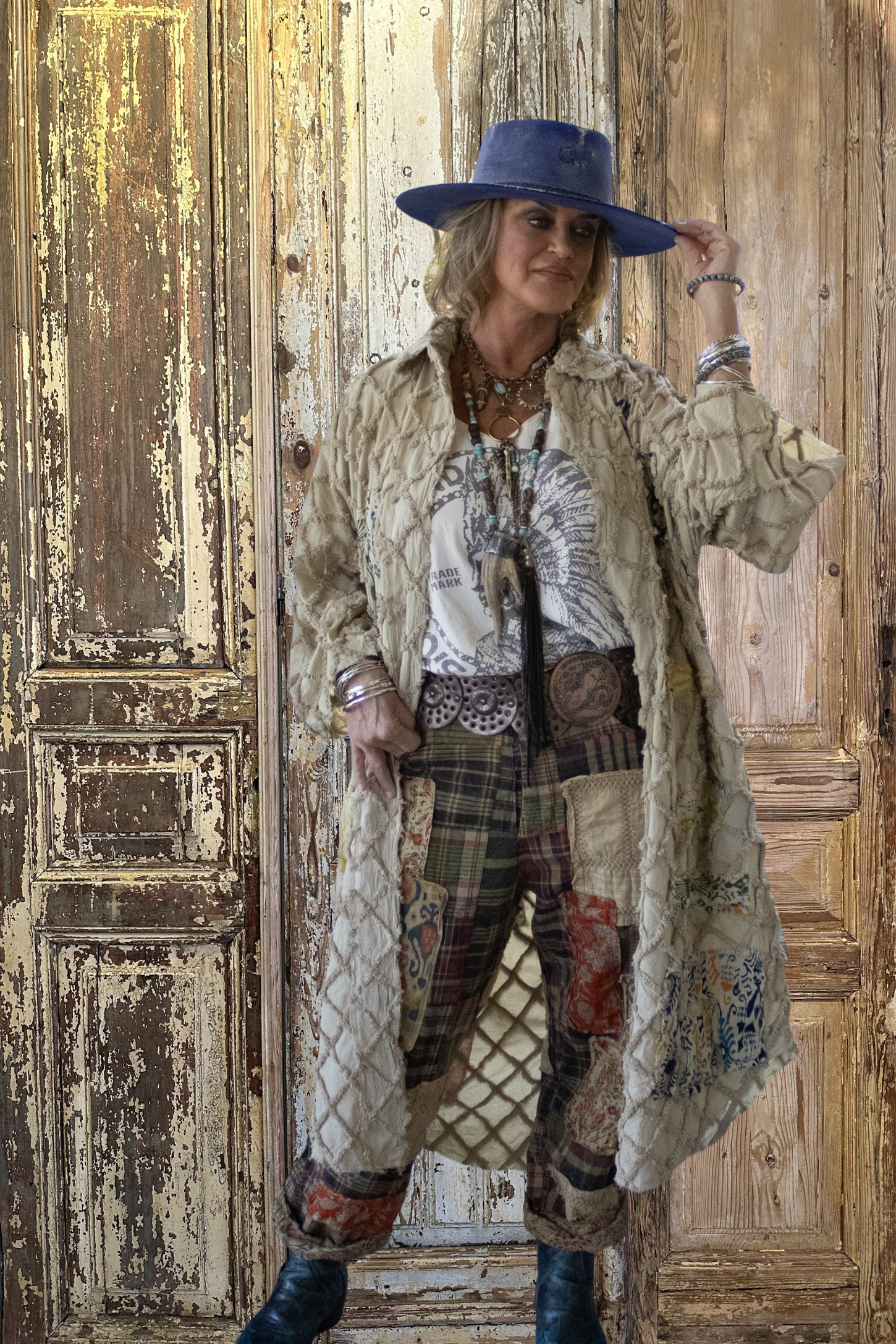 We love it paired with Jaded Gypsy patched pants for that cool, undone style that feels effortlessly hippie and totally authentic. 🌻🪩✌️