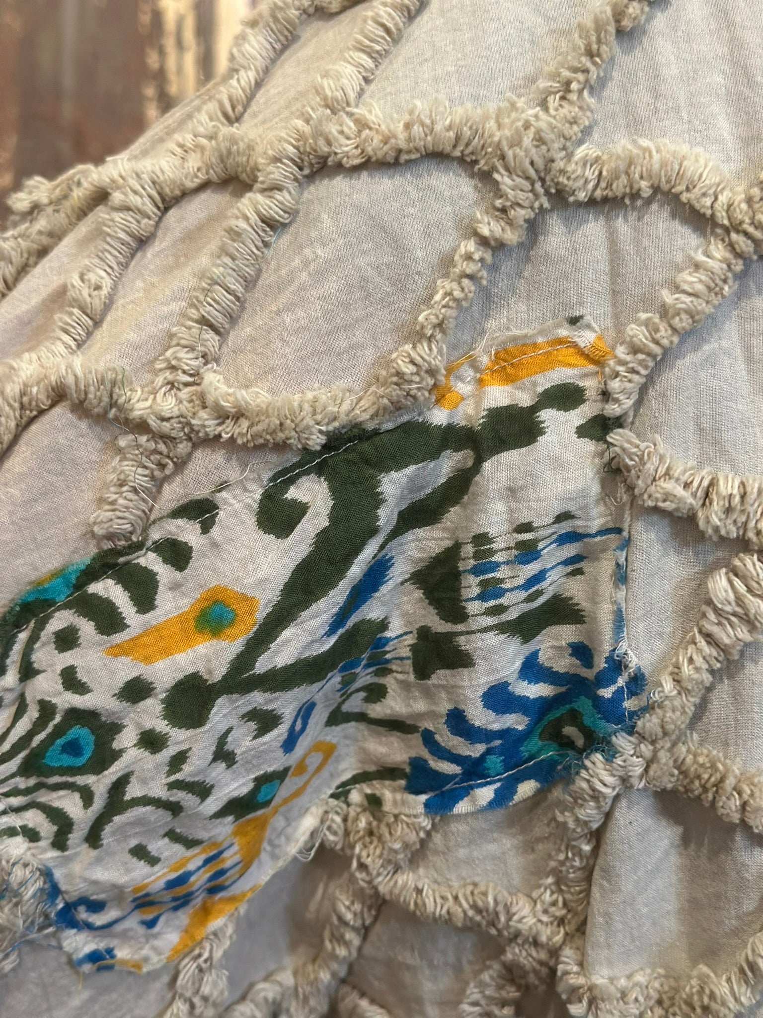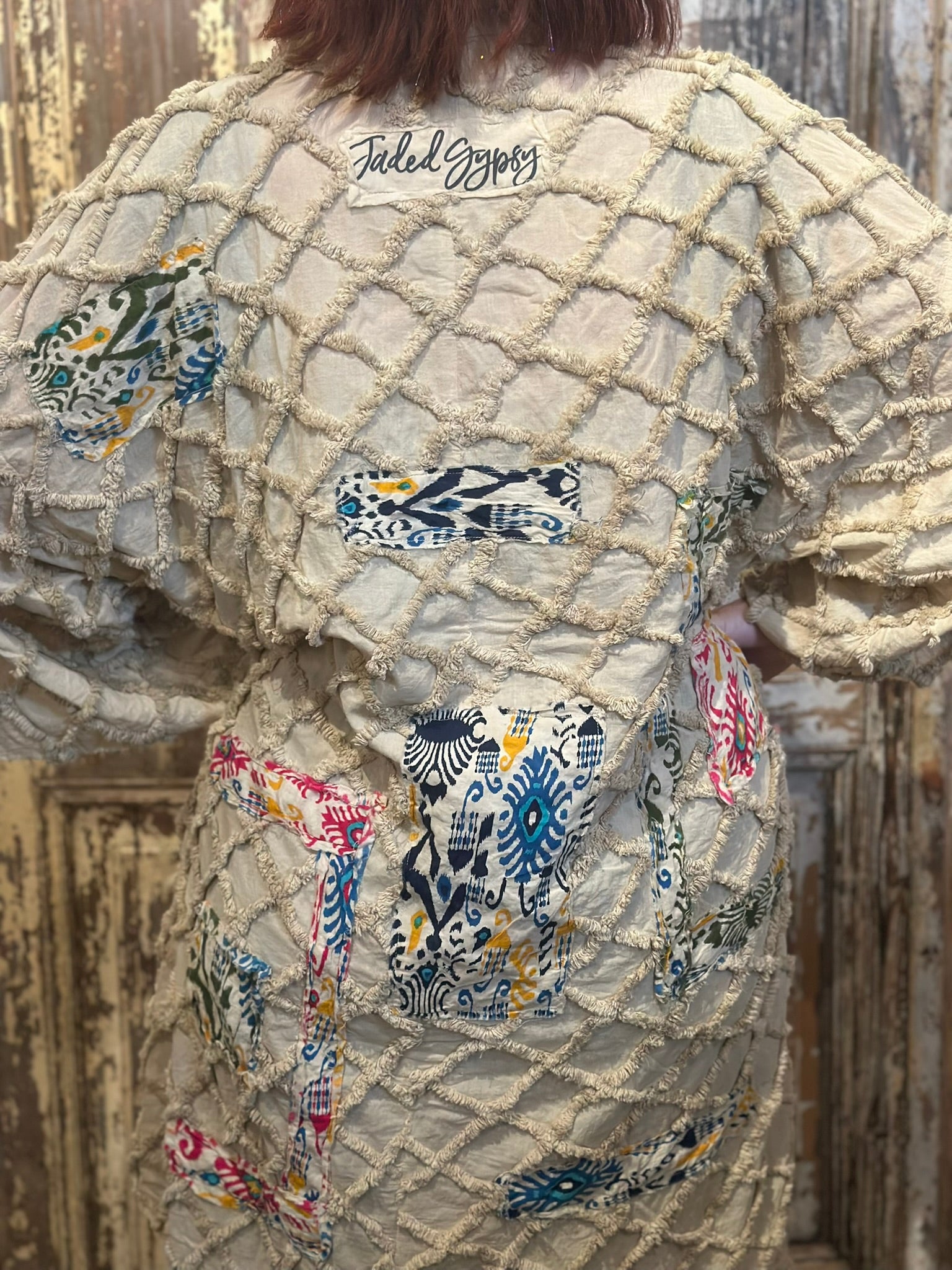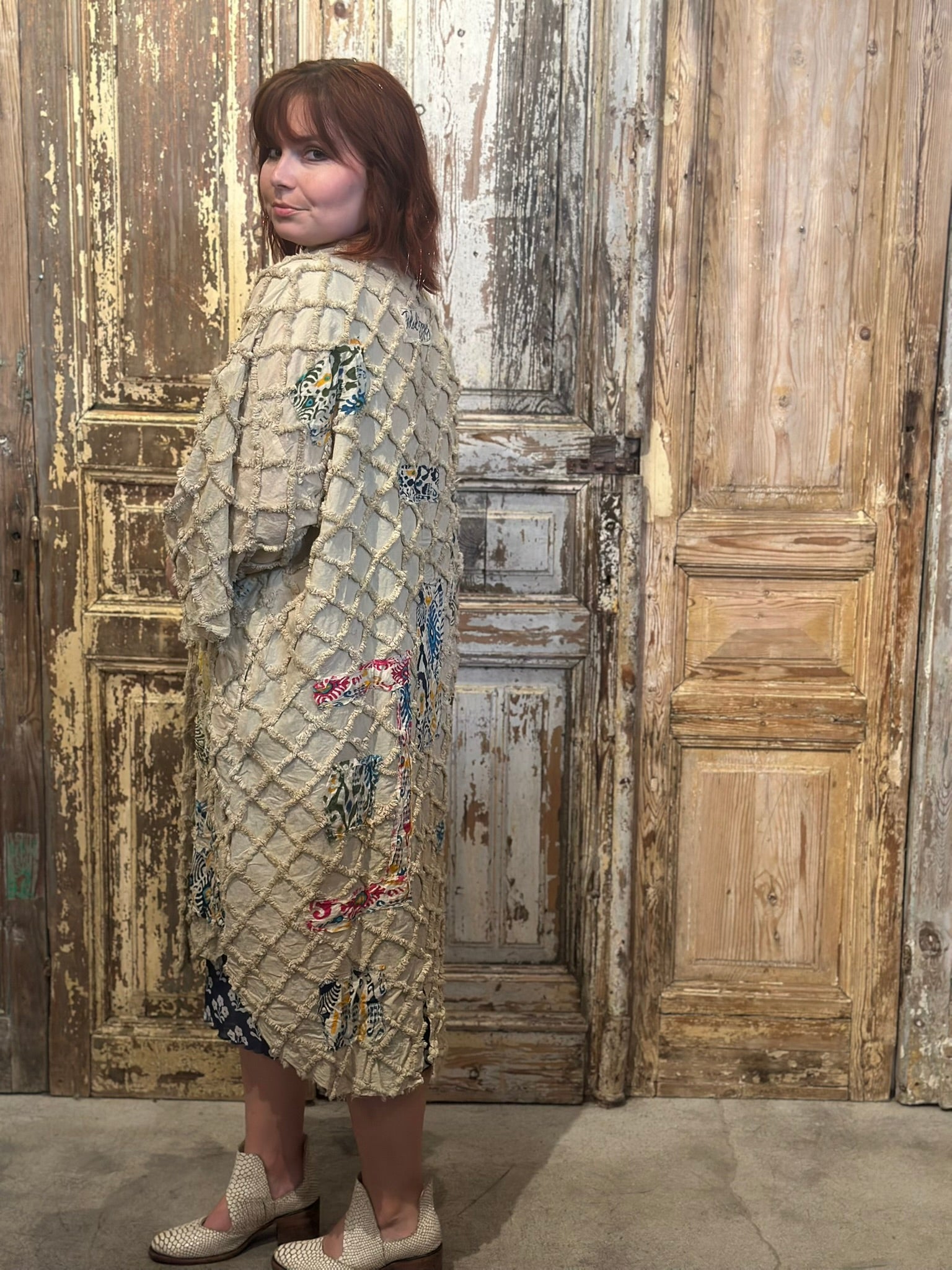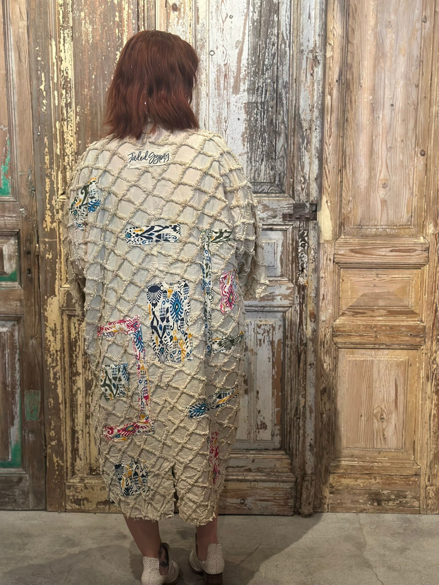 This oversized, lightweight jacket features random patchwork details on the front and back, giving it that perfectly mismatched, one-of-a-kind look. The textured fabric adds vintage flair, while the easy, throw-on fit makes it the ultimate go-with-everything layer.
