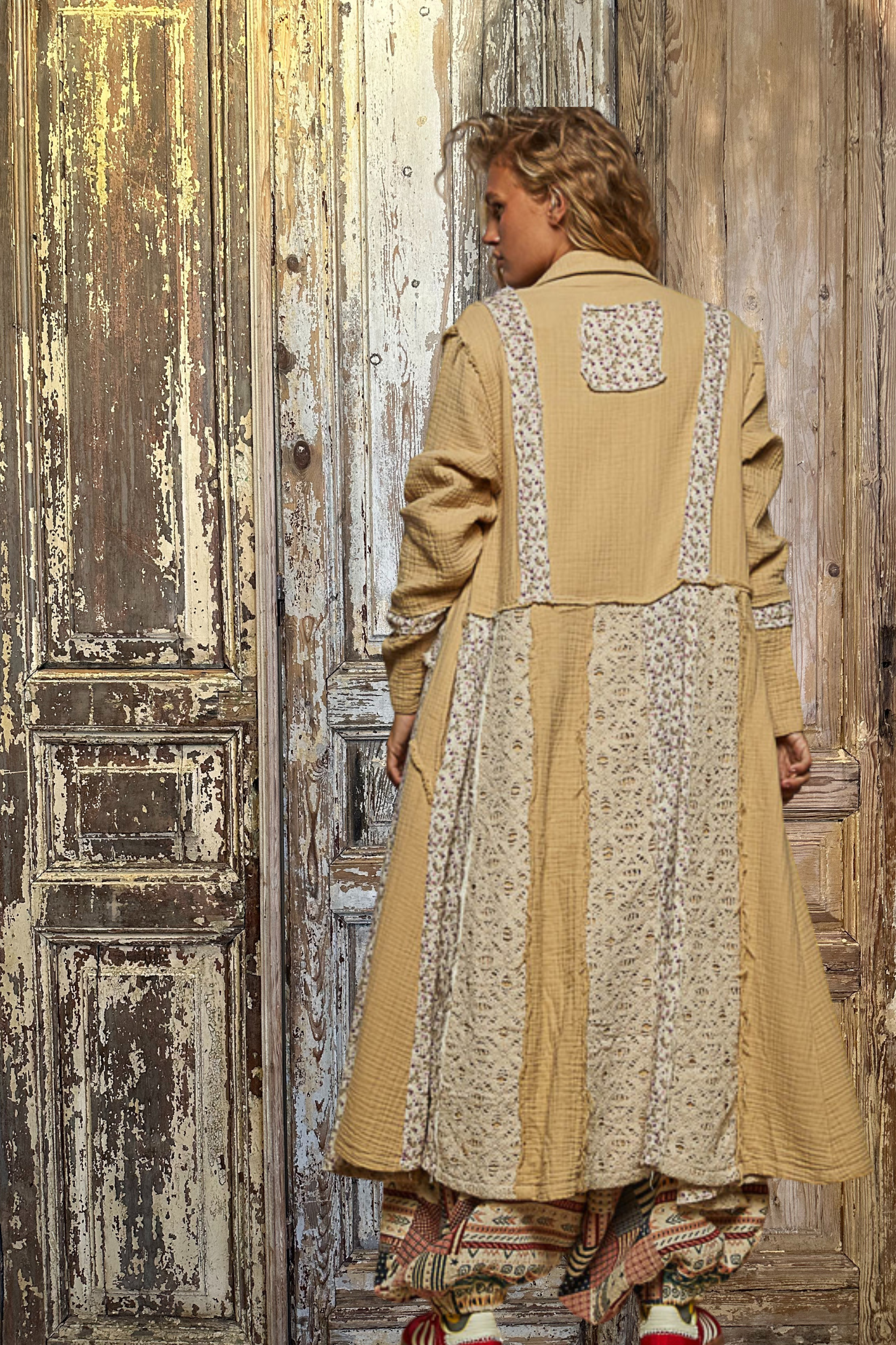 Drift into fall with our Gauze Jacket 🌙🌼—a lightweight, oversized layer designed in soft 100% cotton double gauze with a collar neck, long sleeves, and vintage wash for that lived-in hippie vibe. Detailed with floral + crochet patches, lace panels, and raw outseams 🪡✨, this jacket mixes boho romance with trendsetting edge. A half-button front in metal adds just the right touch of rugged charm ⚡️, while its relaxed fit makes it perfect for layering. Throw it on with cowboy boots, your fave patched jeans, and a simple Free People tee for that cool-girl, free spirit energy 🌻🍂✌️.