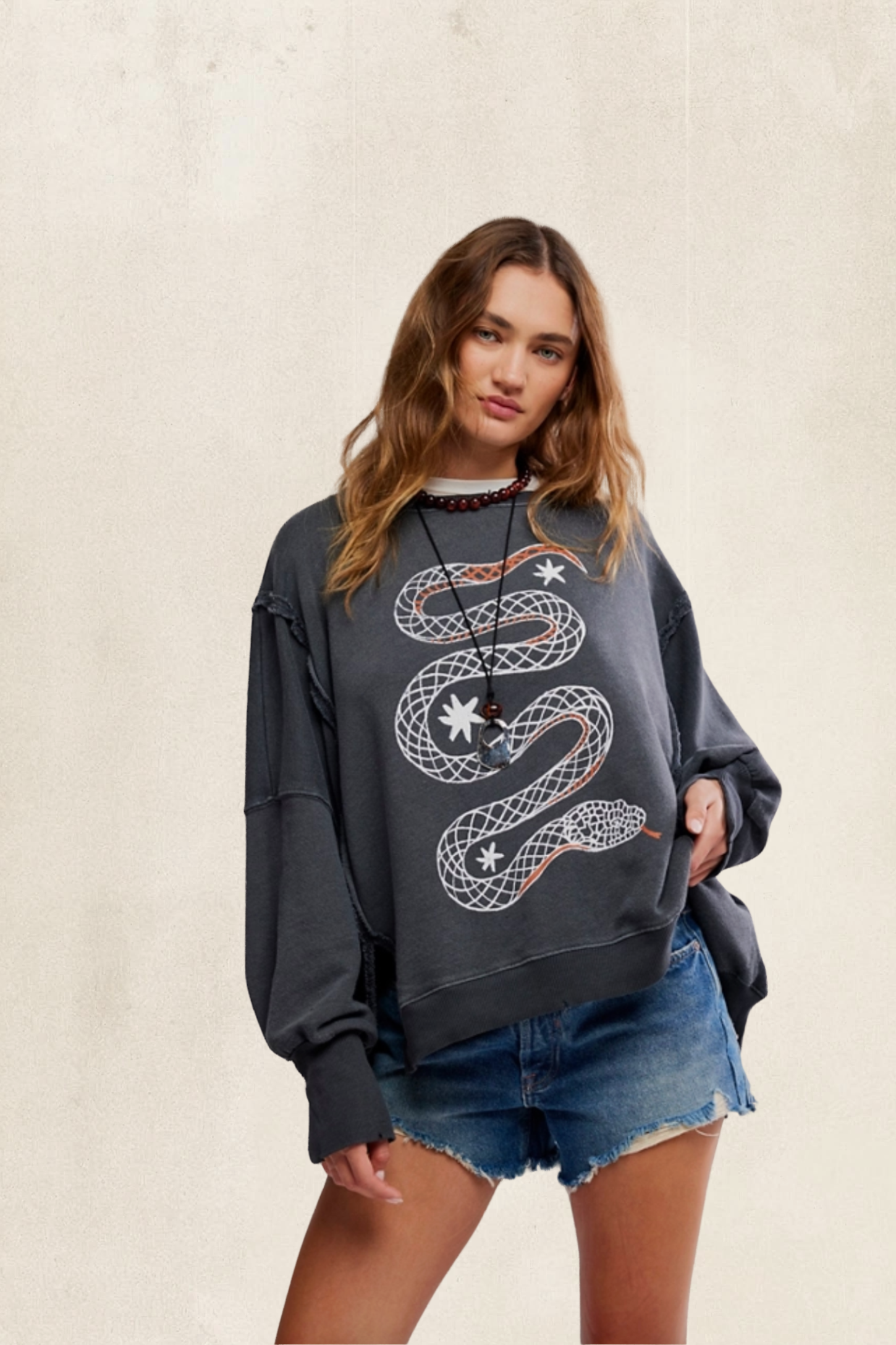 Easy, slouchy, and totally Free People 💫 The Graphic Camden Pullover brings effortless boho style with its relaxed fit, scoop neckline, and dropped shoulders. Ribbed hems, side slits, and soft fabric make it your new throw-on-and-go favorite. Perfect with denim, flares, or comfy bottoms for that laid-back Trestles vibe ✌️✨
