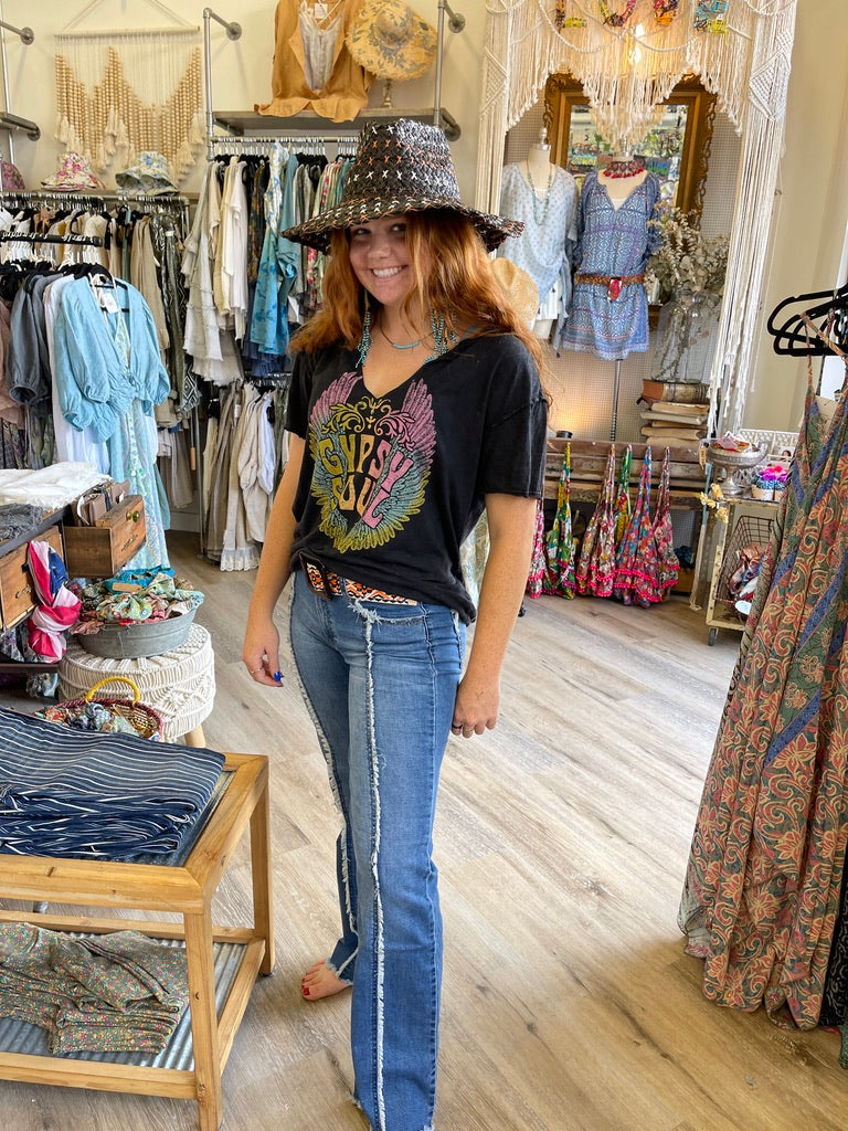 Show off your carefree spirit in this vintage-dyed, Gypsy Soul tee! Crafted from an extra-soft modal/cotton blend, the short sleeves and V-cut neck make it comfy and breathable - perfect for any sultry day. Boheme never looked so good!