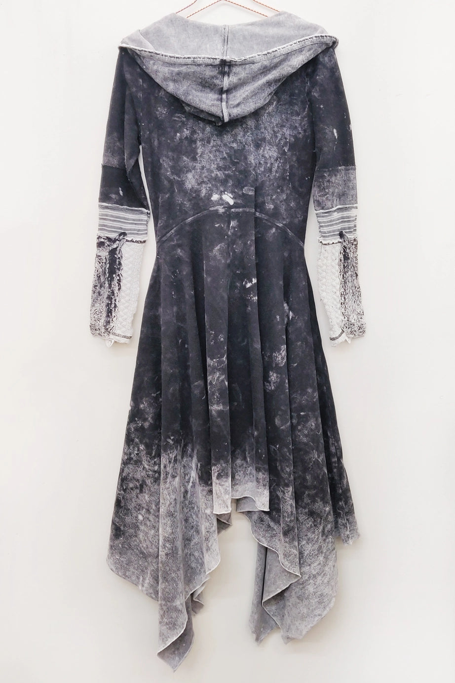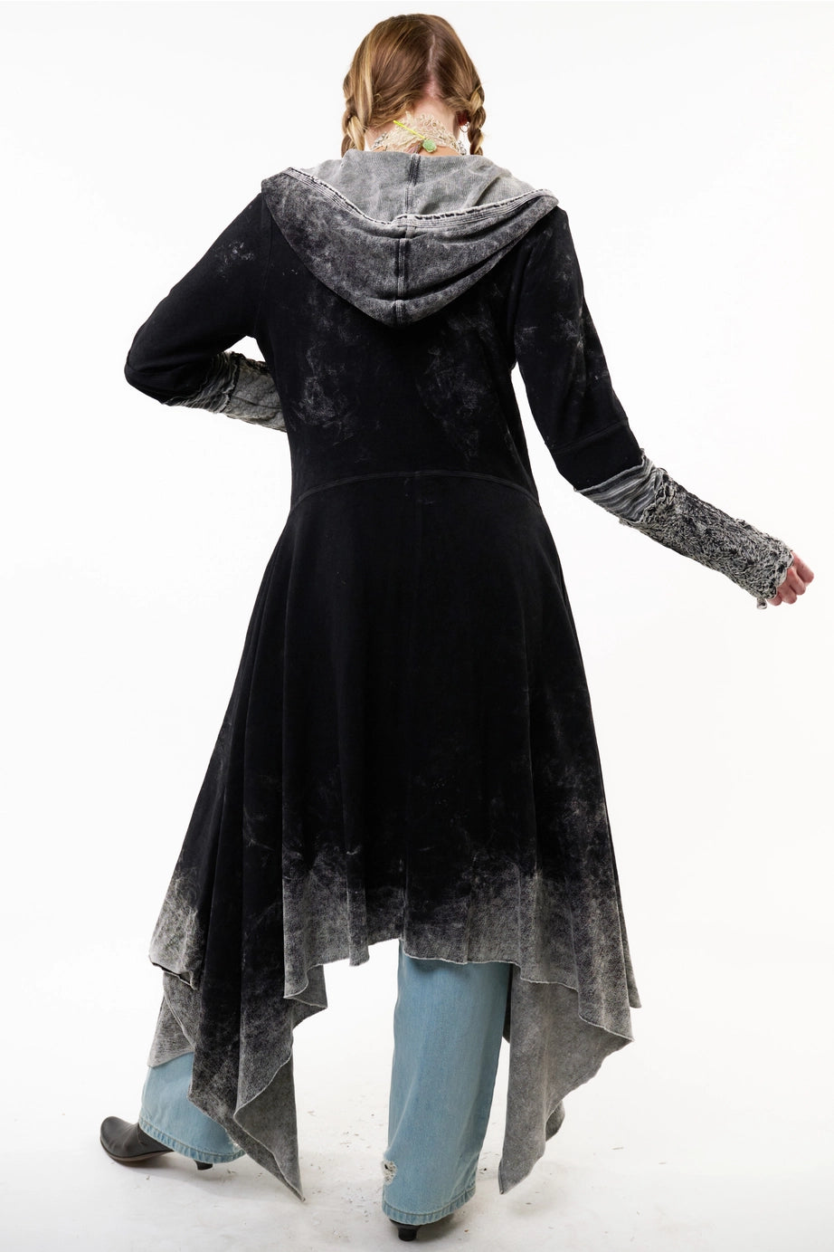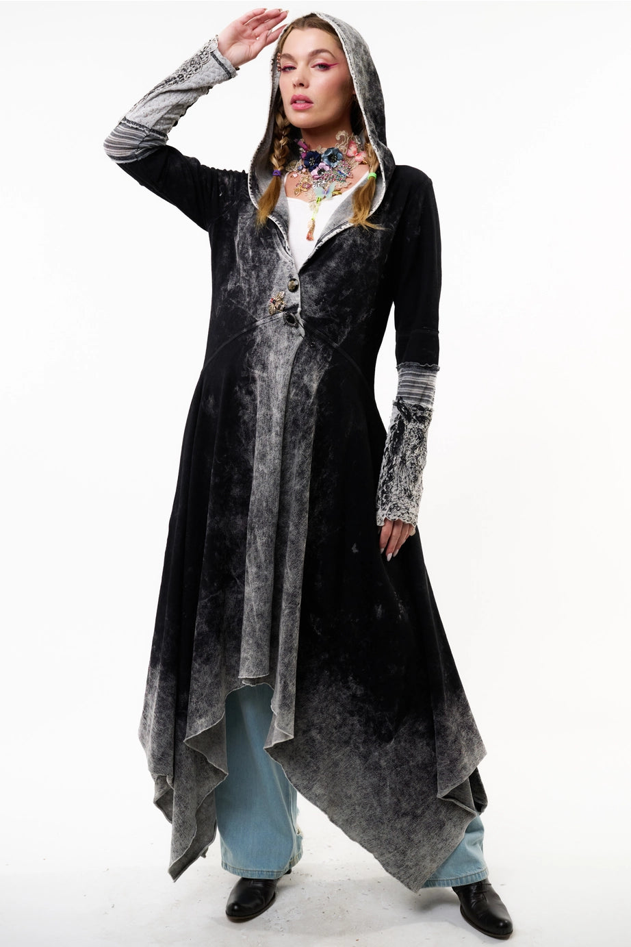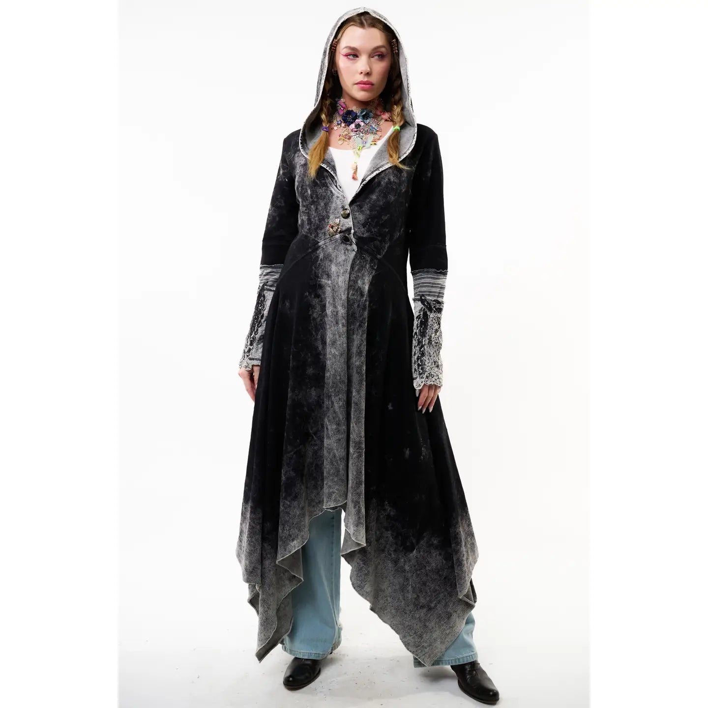 Embrace your inner goddess with our Forest Goddess French Terry Coat! The hi-lo design and floral embroidery add a touch of elegance, while the loose wide hoodie and vintage mineral wash provide comfort and style. Plus, it comes with a bee broach for a unique touch. Unleash your wild side and feel like royalty in this one-of-a-kind coat.