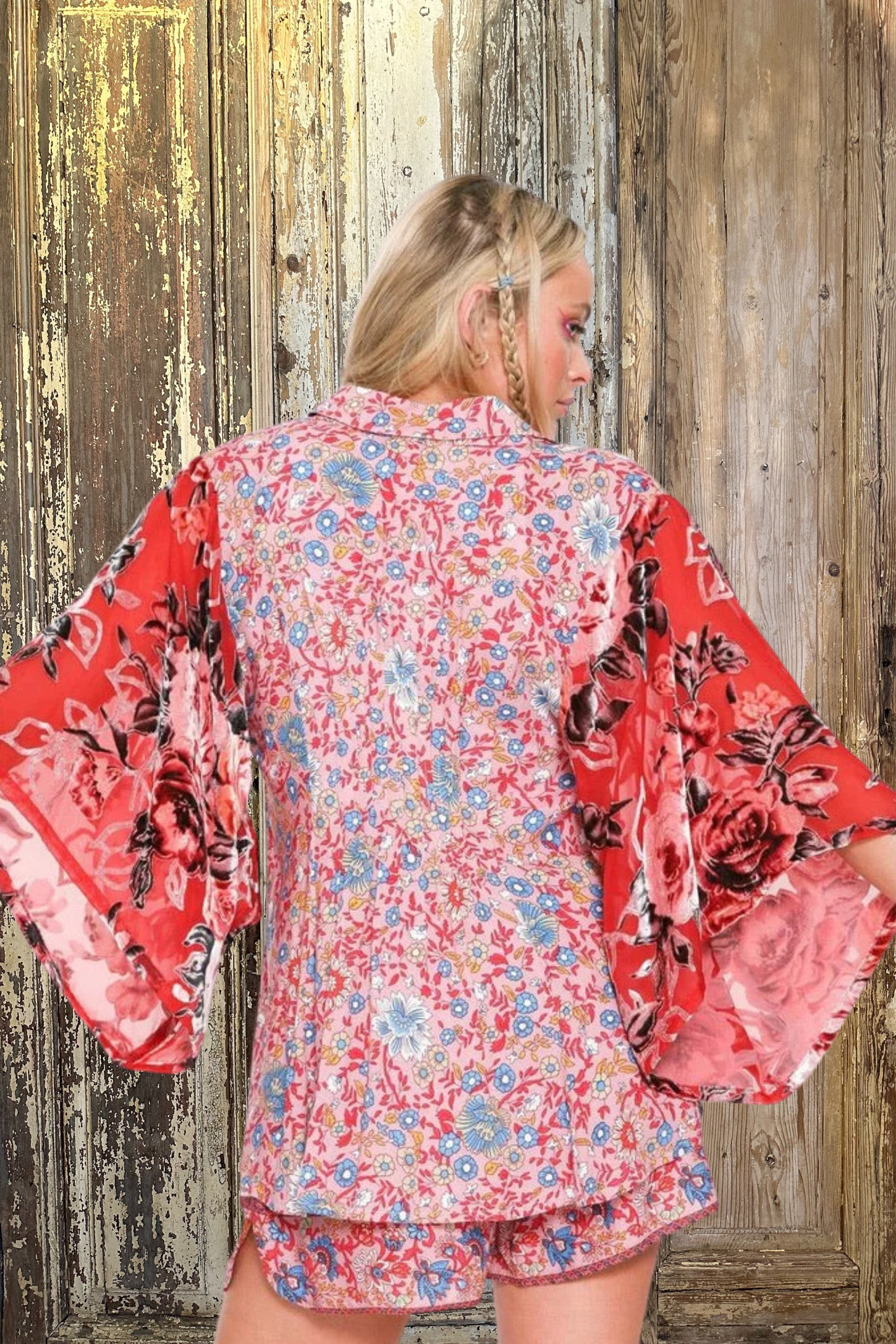 Elevate your style with our Inspired Shirt. The gypsy sleeves and boho print exude a sophisticated, old-world charm. The statement floral print on the back with rows of pintucks adds an elegant fit. A must-have for your casual wardrobe.