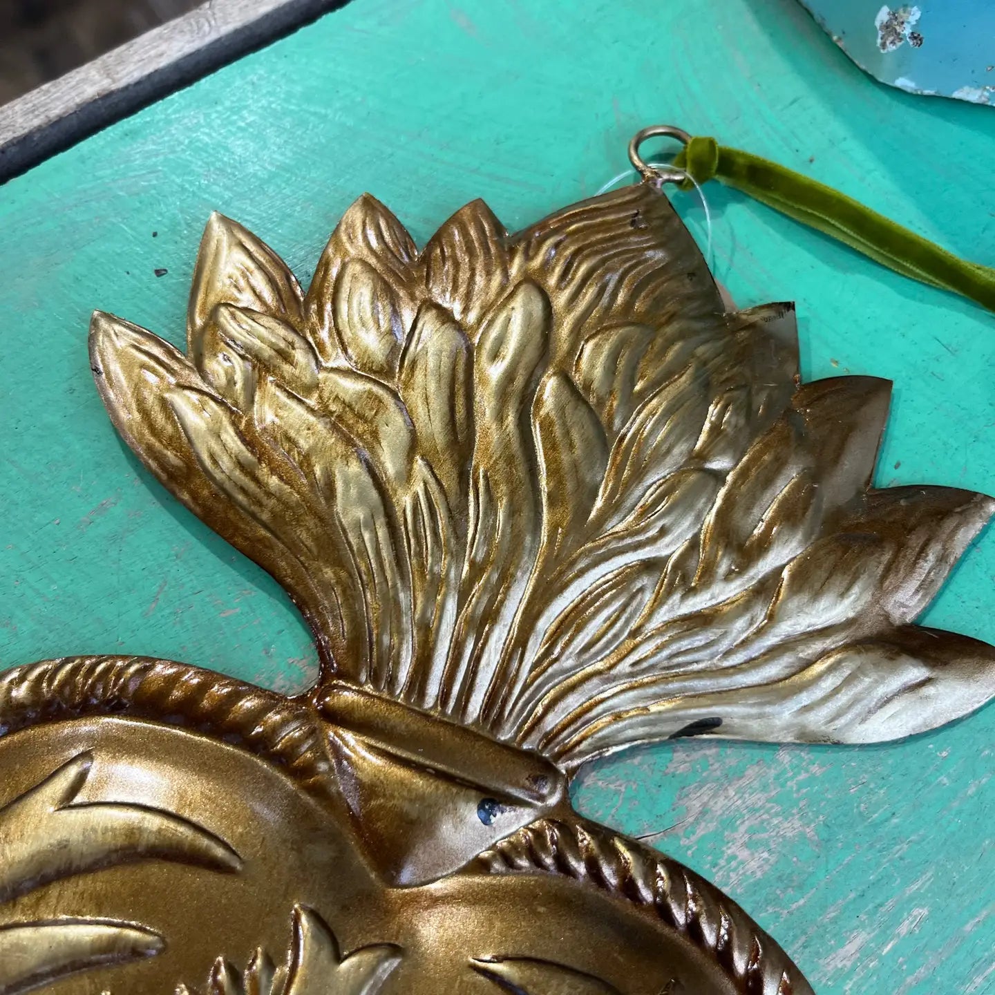 ✨ Add a soulful touch with the Jesus Mary Hollow Sacred Heart Ornament — tin heart. Emblem on these beautiful Sacred Hearts represent "to Jesus through Mary". Made in India. Antique Gold Color. Available in a variety of sizes. Handmade in India with a vintage-look finish, this piece can hang on your Christmas tree or be displayed year-round as boho home decor. Perfect for a wall accent, altar piece, or eclectic gift, it brings warmth, meaning, and timeless style to your space. 🌹🕊️