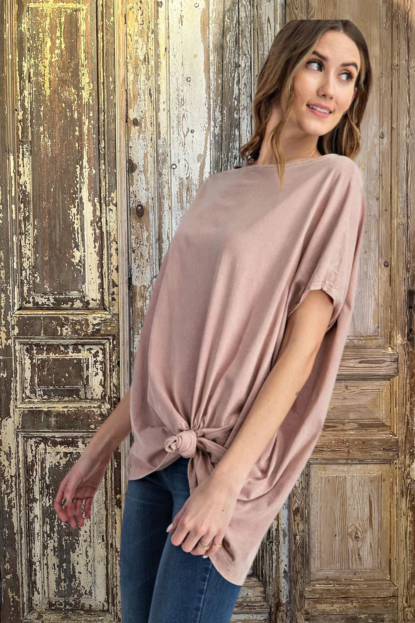 100% mineral washed cotton tops.  These boat neckline tops, seamless sleeves and asymmetrical cut are loose fitting comfortable tops that can be worn knotted to the side or down and long.  Wear with cuffed jeans or flowy skirts, they are so soft and comfortable to wear all day long!  We love these tops to go with any of our butter soft or compression leggings as an easy to-and-fro outfit!  Size large can fit XL.