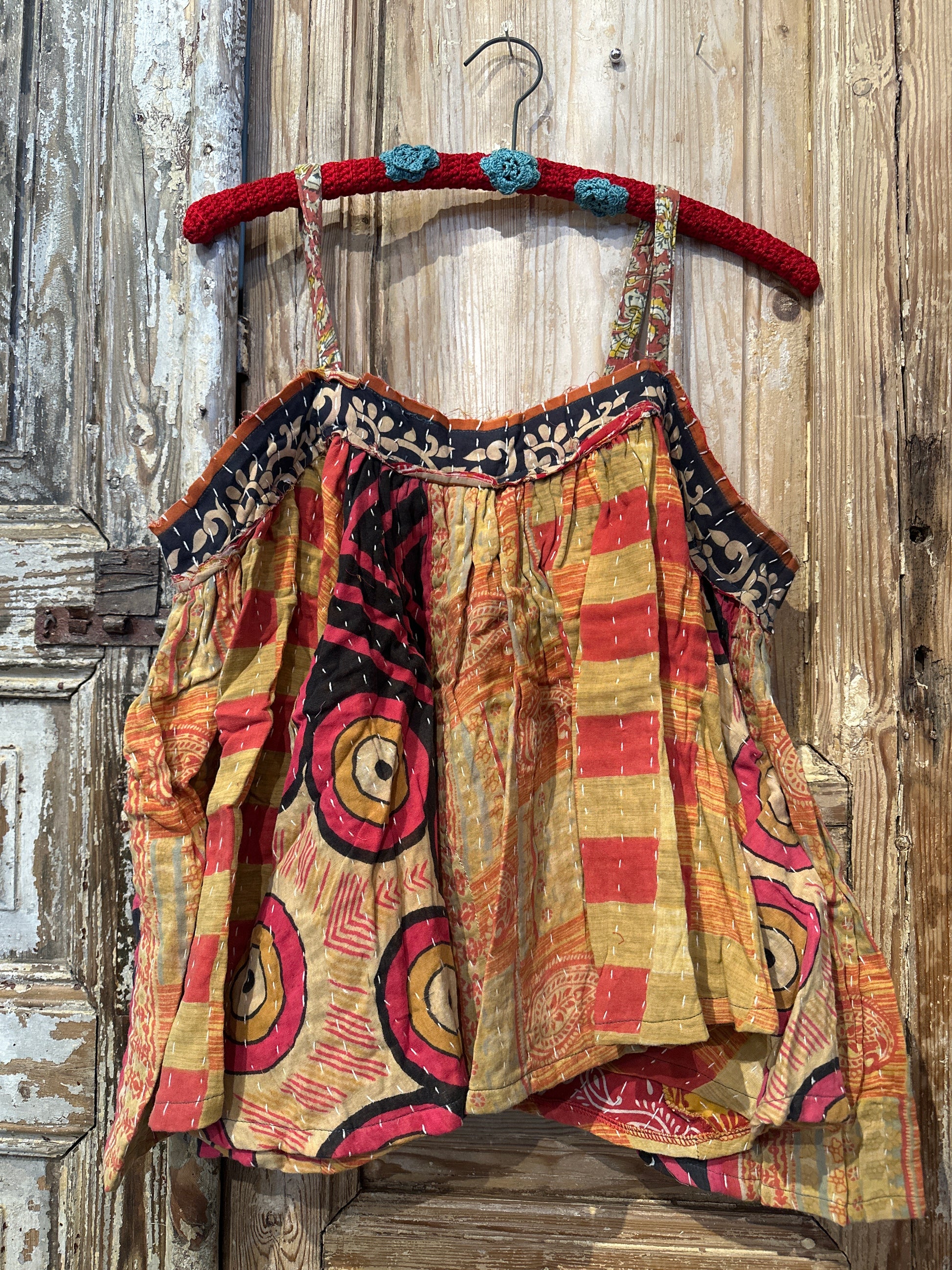 Our Kantha Swing Tank #83 is sure to make heads turn! Crafted from 100% cotton, this loose-fitting, one of a kind garment has all the boho-gypsy vibes you need to stand out. Pair with bell bottoms or other Jaded Gypsy bottoms for a look that's totally off the charts!