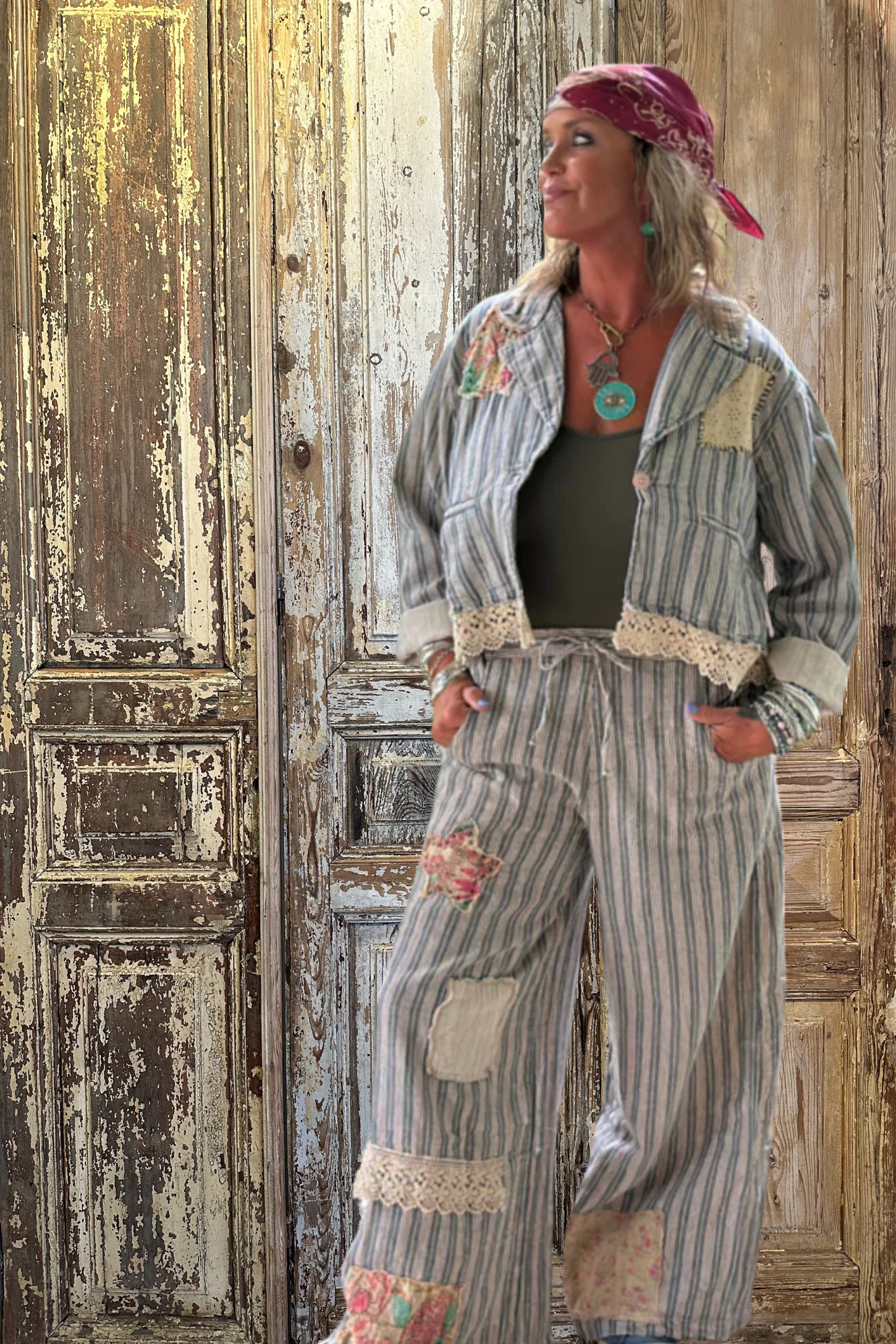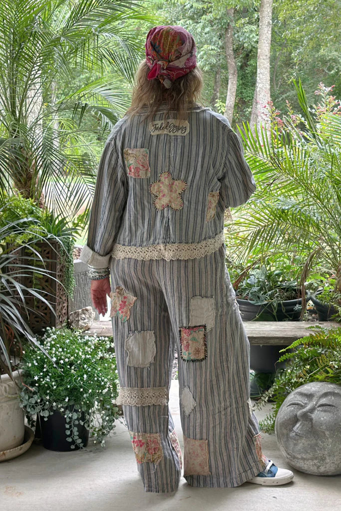 Meet the Lined Up Trouser Pants—the groovy sister to our Lined Up Jacket. Made from 100% cotton, these beauties feature patchwork detailing that runs through the legs, giving them that soulful, handcrafted feel. Fully lined for comfort with a relaxed, flowy fit, they move with you in the most effortless way. Whether you wear them with the matching jacket for the full hippie statement or mix them with one of our lace tops or upcycled tees, these pants are pure vintage poetry in motion. Feel comfy, look cool, and channel your inner flower child. ✌️🌸