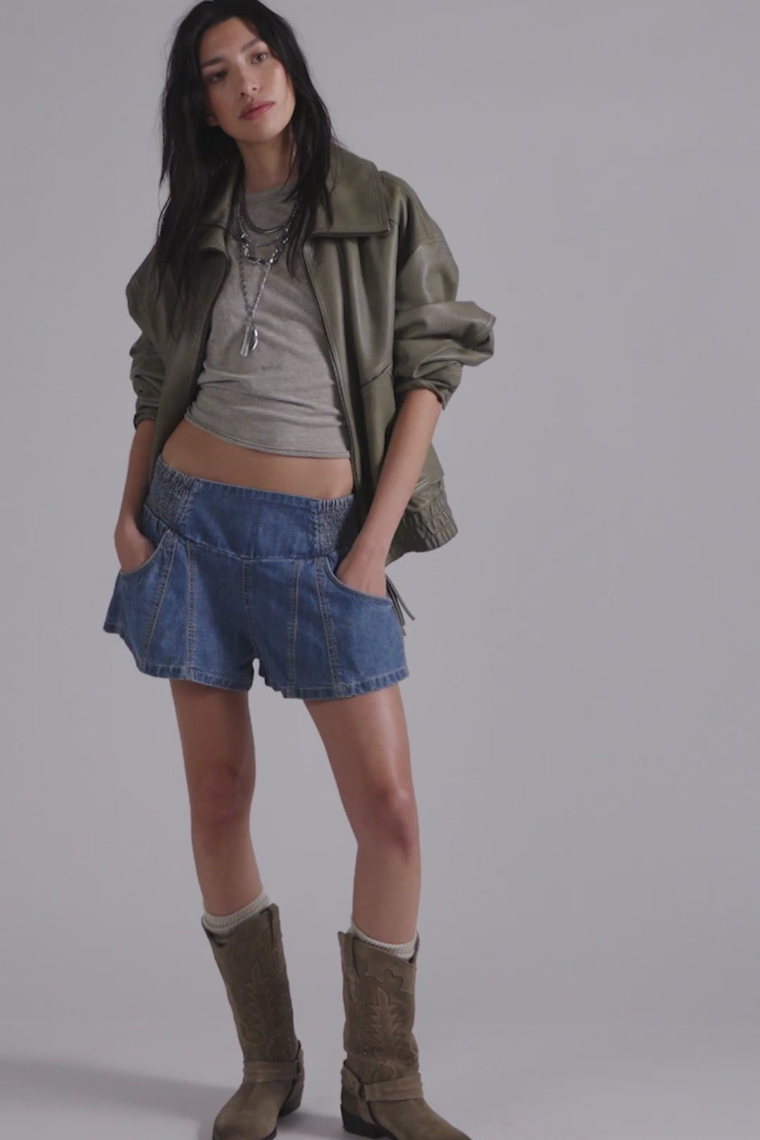 🌙 Luna Pull On Shorts easy breezy chambray denim shorts with effortless boho comfort