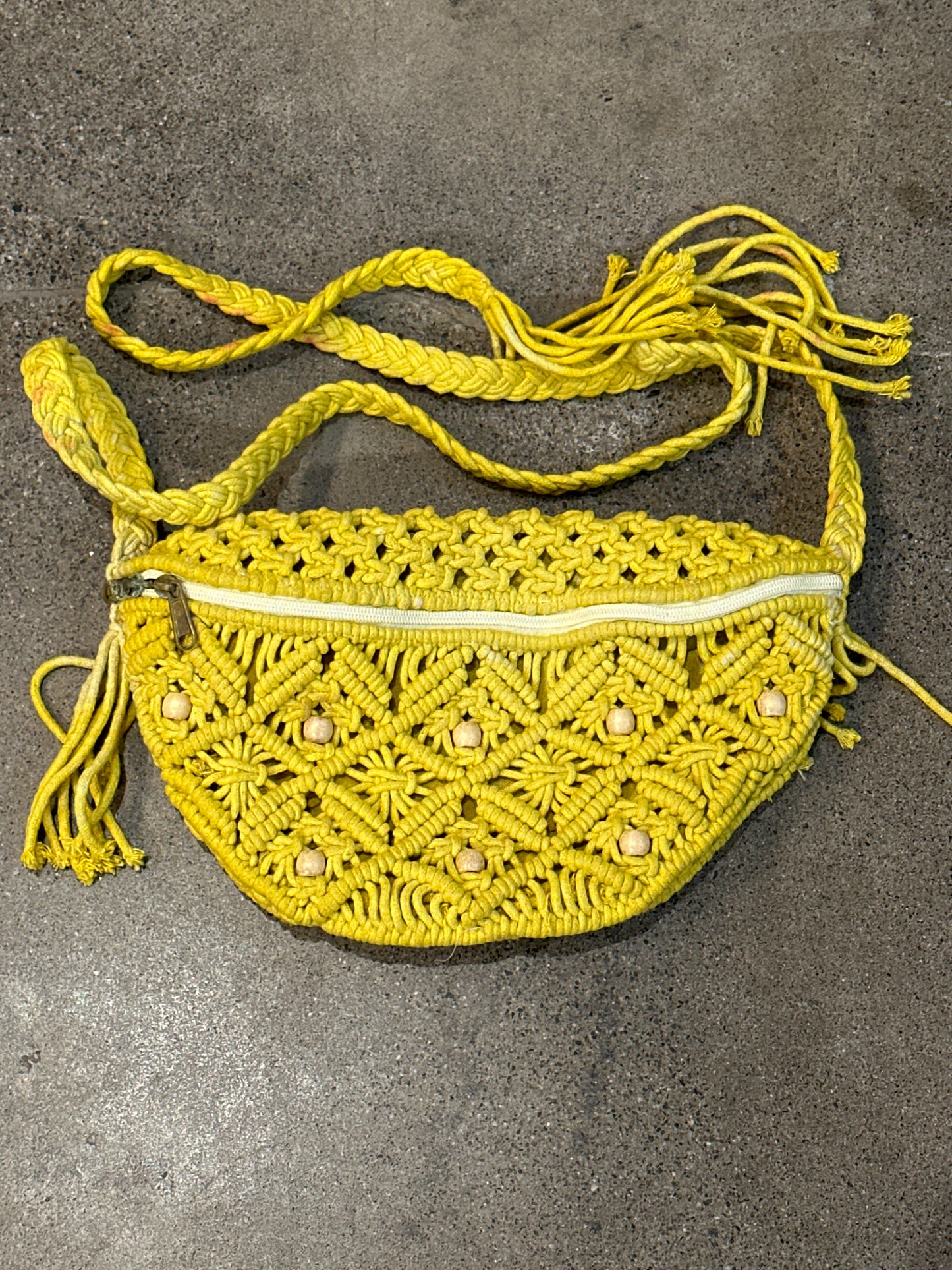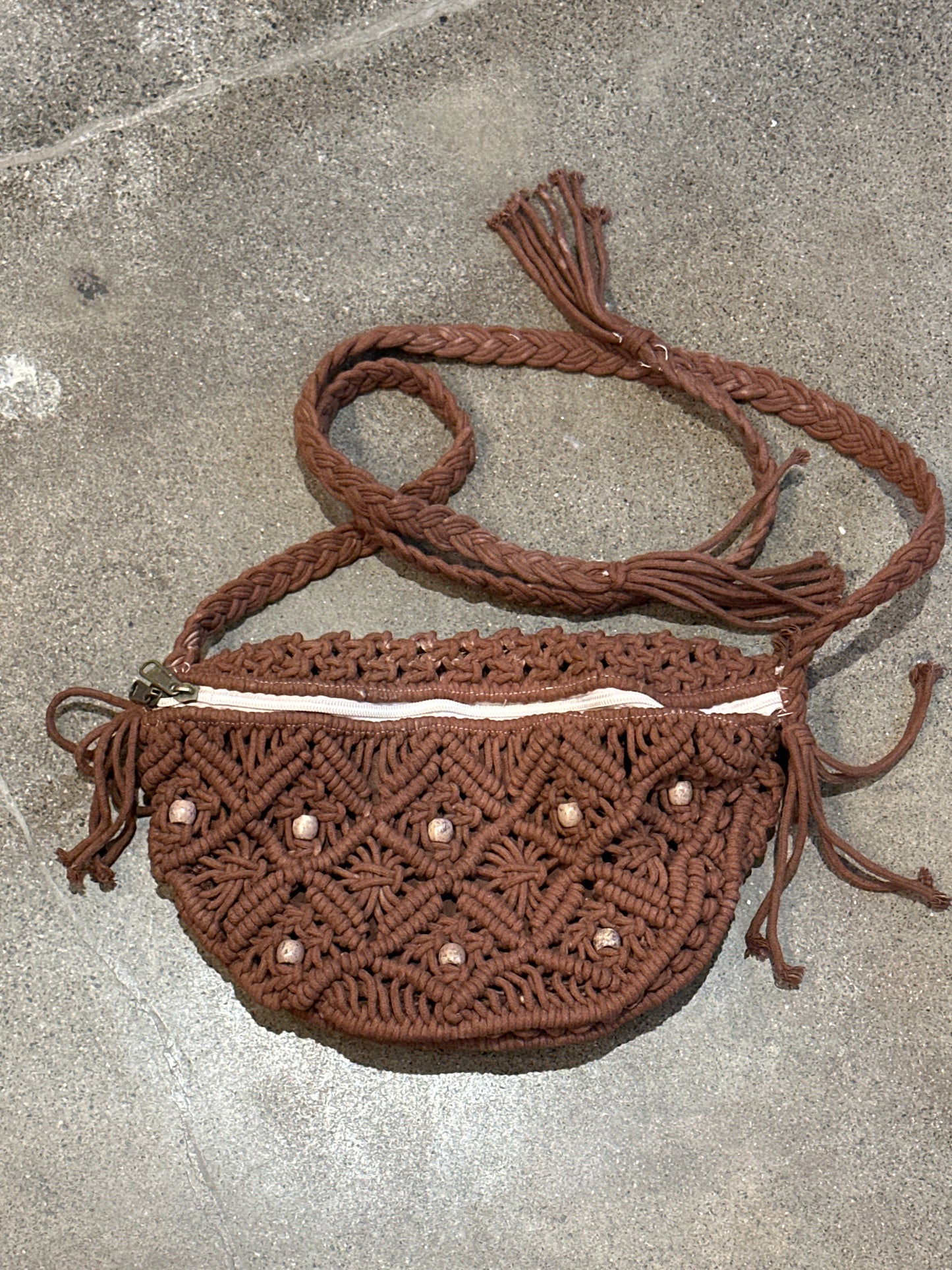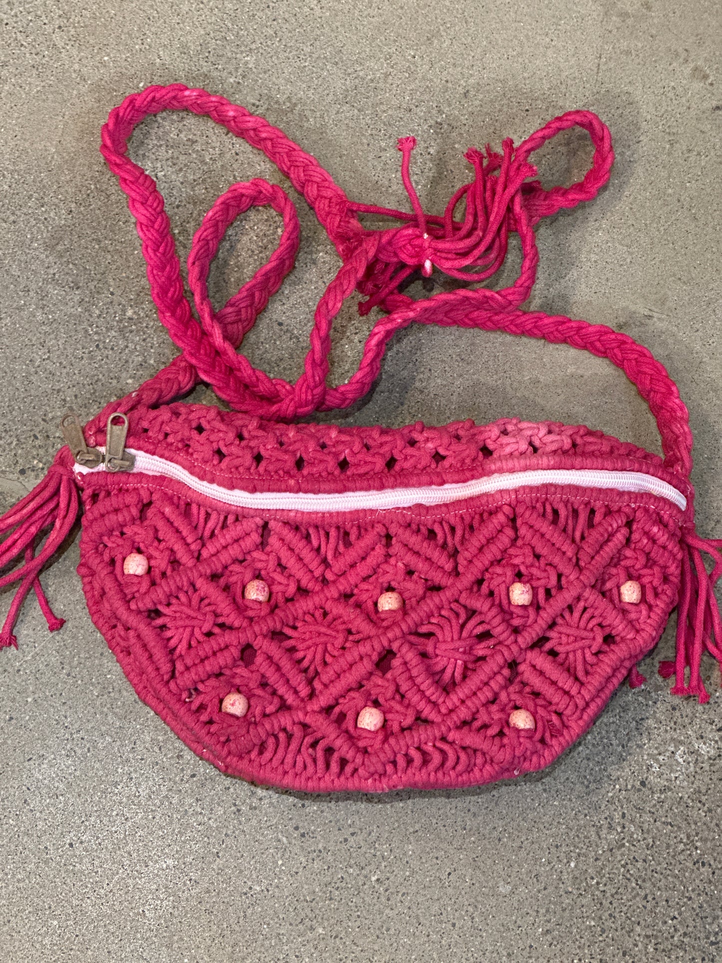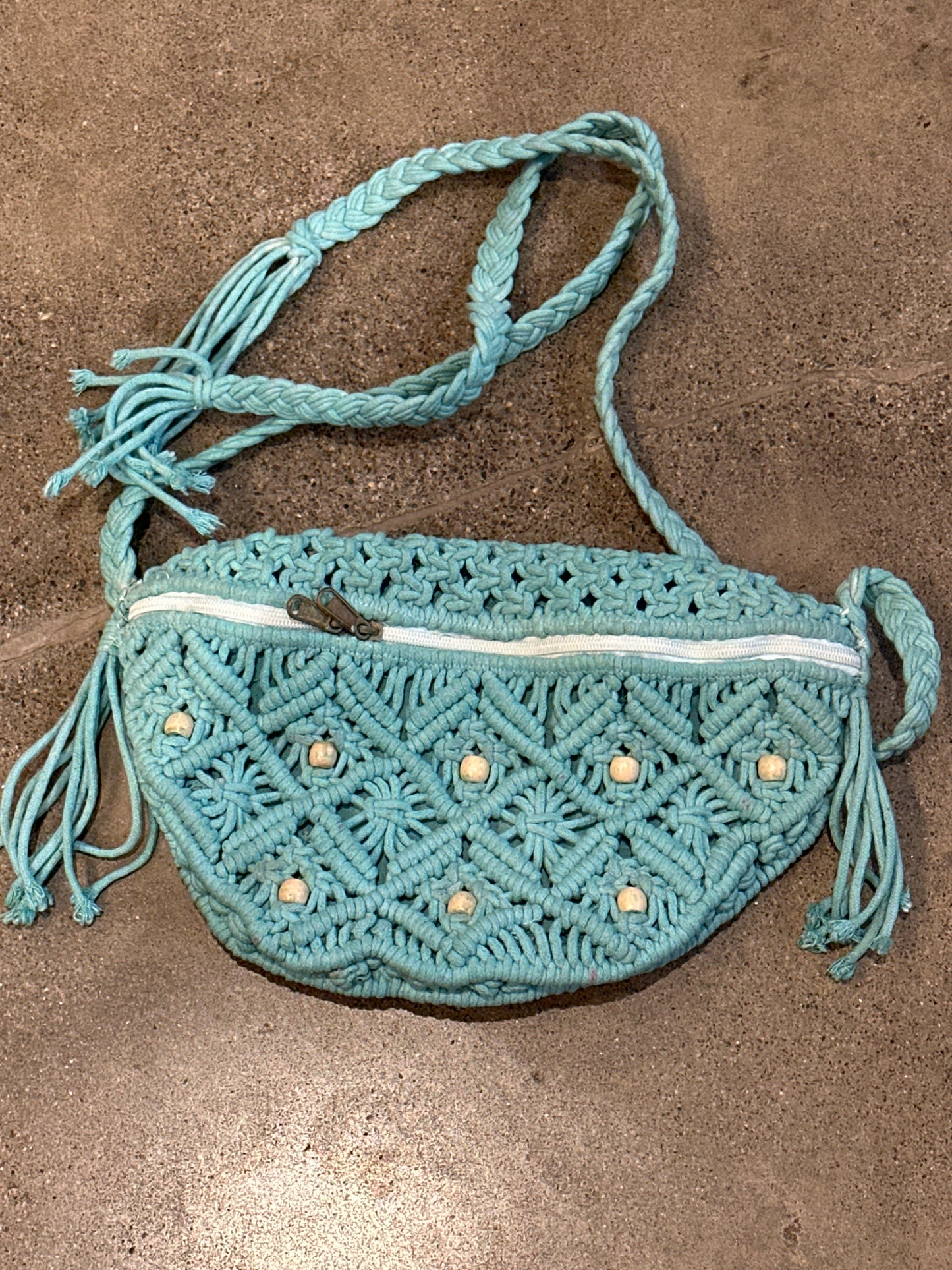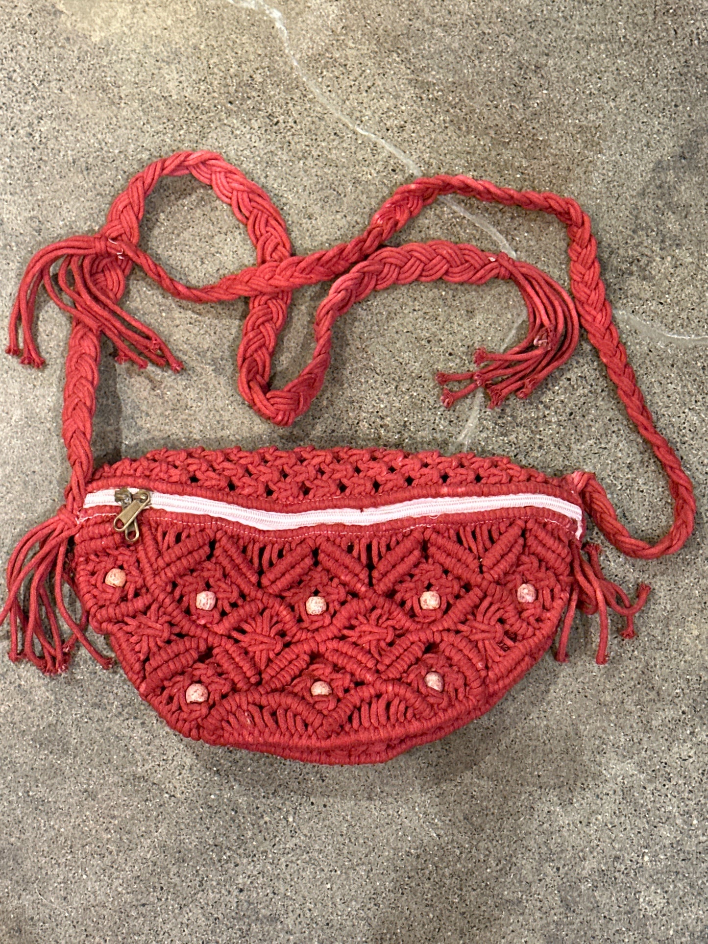Get ready to add a touch of boho chic to your outfit with our Macrame Fanny Pack! Hand dyed to make it look more special! This unique accessory is made handmade in India and lined in canvas cotton with inside pockets. The heavy duty matching macrame straps that is permanently attached make it versatile for all your adventures. And with its roomy 11x7 size and zipper opening, it's perfect for carrying all your essentials.
