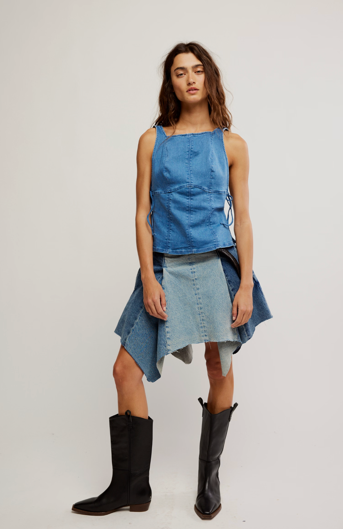 ✨🌿 The Not My Fault Corset by Free People is that effortlessly cool, boho-meets-denim piece with a little attitude built in. 🌿✨