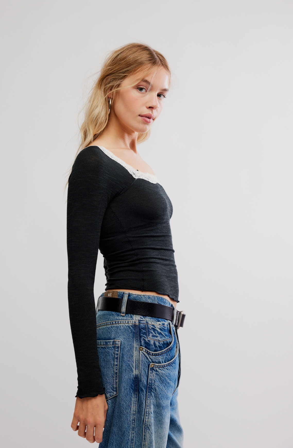 Breezy and beautiful, the Oh My Darling Top by Free People is that light-as-air layer every boho soul needs. Made from a soft cotton blend in a slim, flattering fit, this dreamy long sleeve features delicate lace at the neckline and sweet lettuce-edge trim for a touch of vintage romance. With its wide boat neckline and effortless vibe, it’s perfect for pairing with flowing skirts, high-rise flares, or layering under your favorite slip. A forever hippie-chic staple for free spirits everywhere. ✨🌼