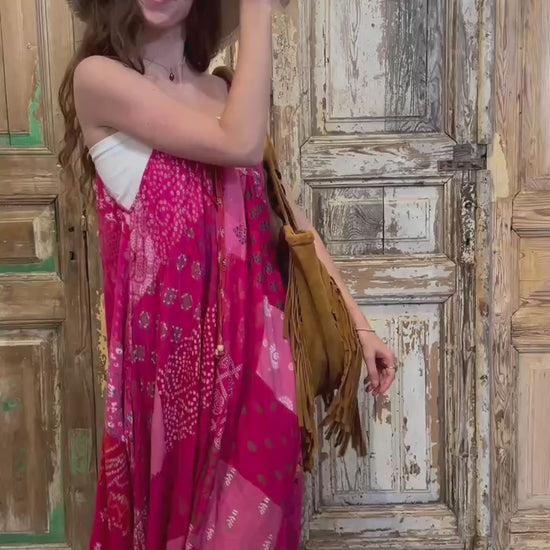 Patchwork Sunrise Dress – Boho Beauty in Bold Magenta