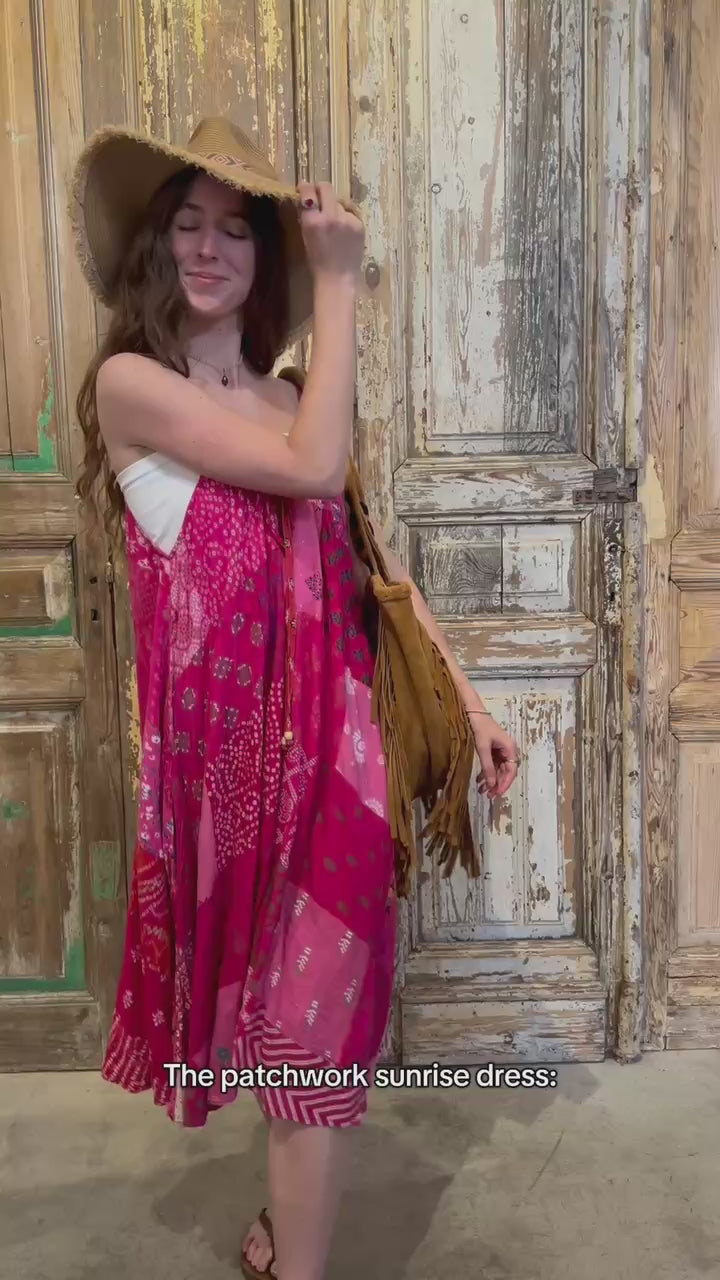 The Patchwork Sunrise Dress is made for market mornings, beach days, and everything in between. It’s bold, breezy, and unapologetically boho.