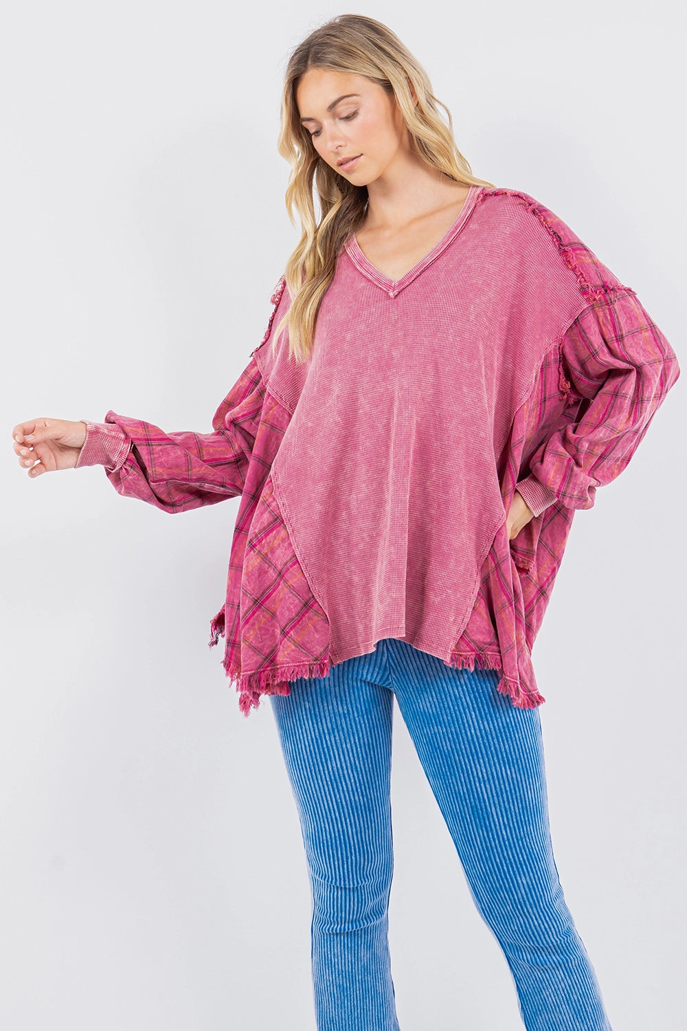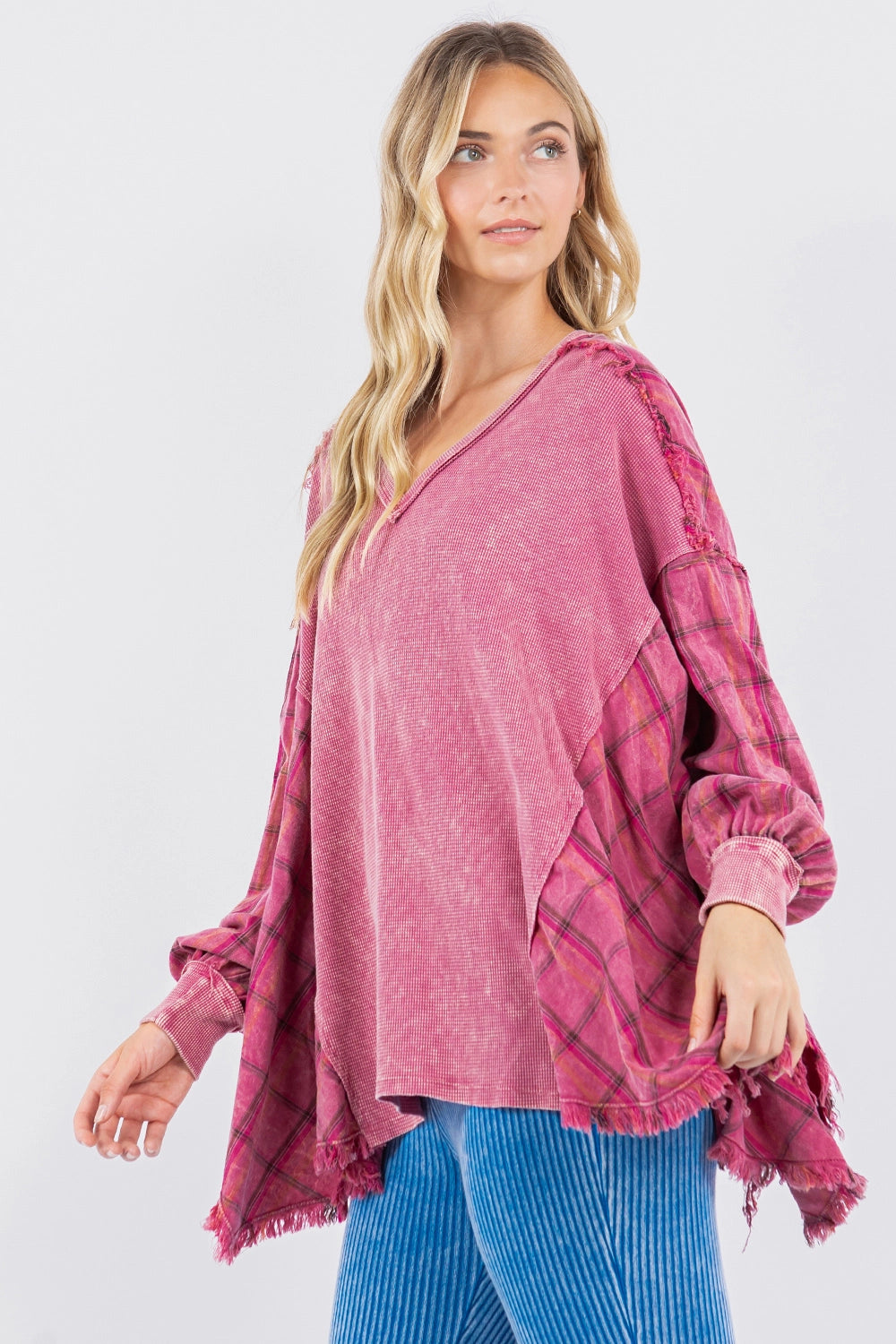 The Plaid & Thermal Top is your new go-to for laid-back, boho fall style. Made from soft thermal cotton and mineral washed for that perfectly broken-in look, this oversized v-neck features plaid side inserts that add a fun, vintage twist. The relaxed fit and cozy texture make it comfortable and effortlessly cool — ideal for layering or styling solo. Pair it with a mini skirt and boots for a flirty fall look or with funky flares for that signature Trestles hippie vibe.