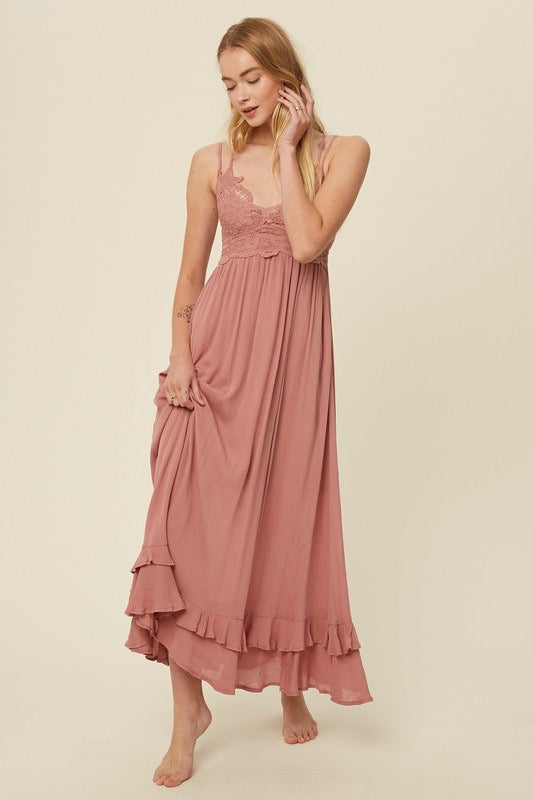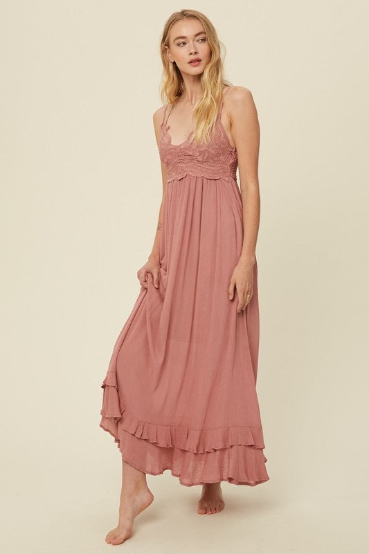 We can't get enough of the Melina Dress!  This one comes in the lace bralette top in maxi length.  So fun so flirty just like Melina!  You can add a thin strap for modesty like our Lace Tube Bralette.  Not padded.  Spoiler alert:  side pockets!!