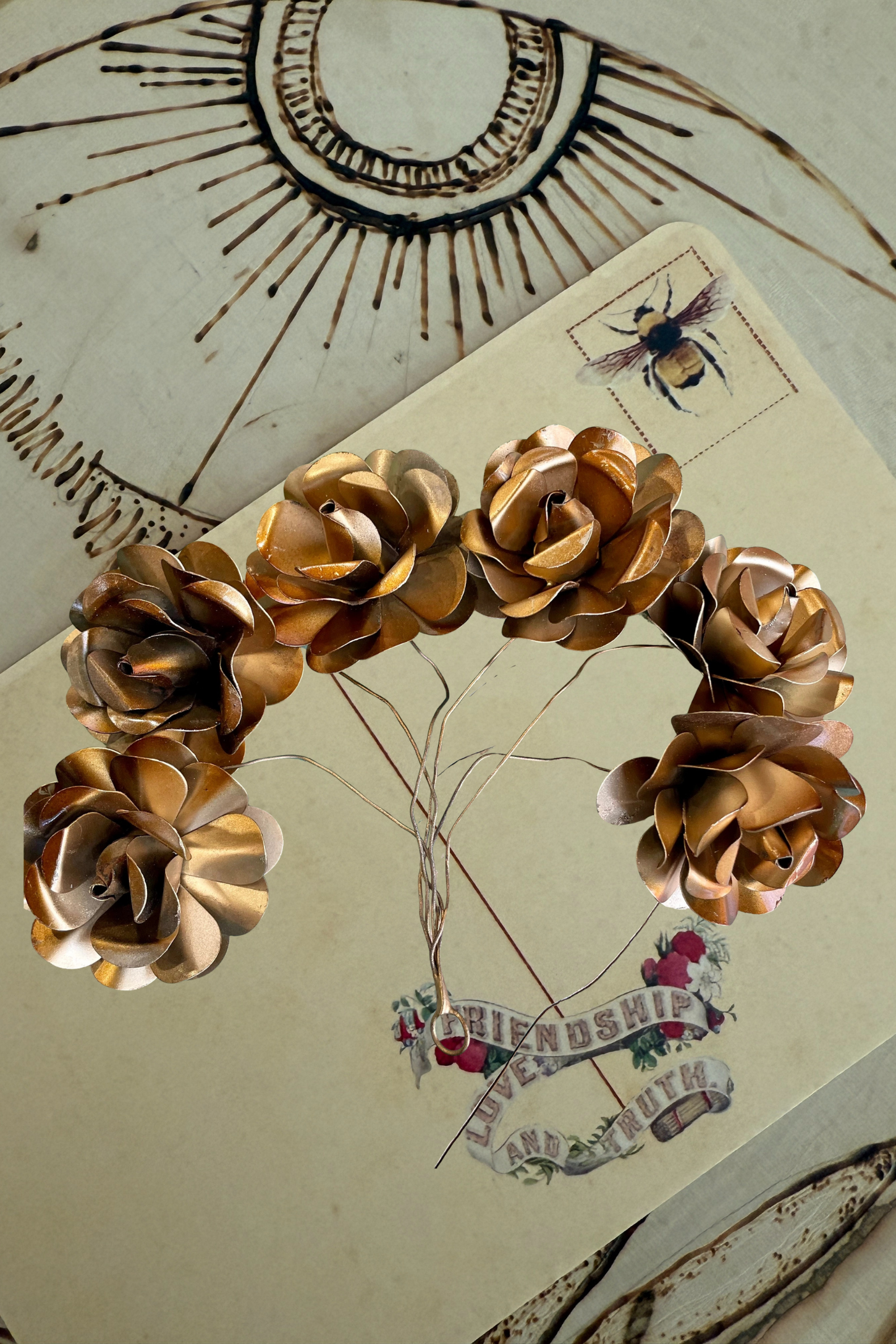 🌹 Add timeless romance to your space with The Roses Bunch — six handcrafted metal roses bundled together with flexible wire. Each rose measures 2.5” in diameter, with a handy ring at the bottom for easy hanging. Vintage-inspired and made in Italy, this everlasting floral accent is perfect for boho home decor, shelf styling, or gifting. No water, no wilt — just soulful beauty that makes your home feel collected and full of love. 🌿✨