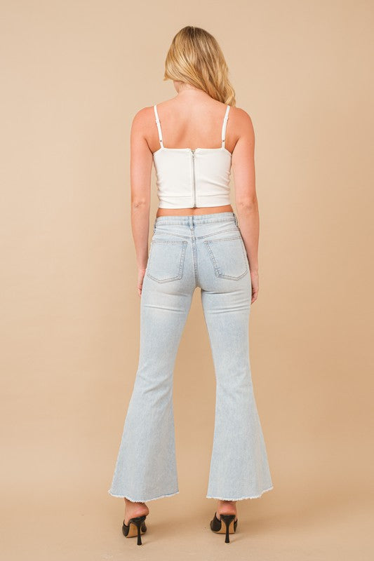 Get ready to shine in our Sequins Fringe Flare Jeans, the perfect blend of Western flair and subtle sparkle! Designed with a fringy sequin detail and a cluster of bling on the front, these jeans add just the right amount of bling—bold but not over-the-top. The slightly flared leg, raw hem, and stretchy fit make them as comfortable as they are stylish.