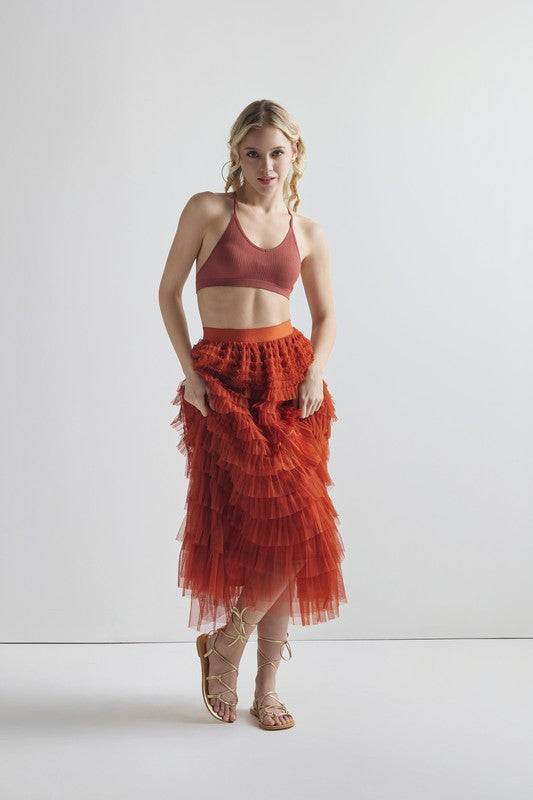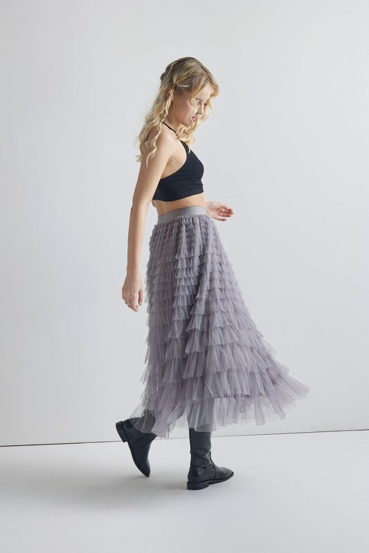 Sized Ruffled Tulle Skirt-9912