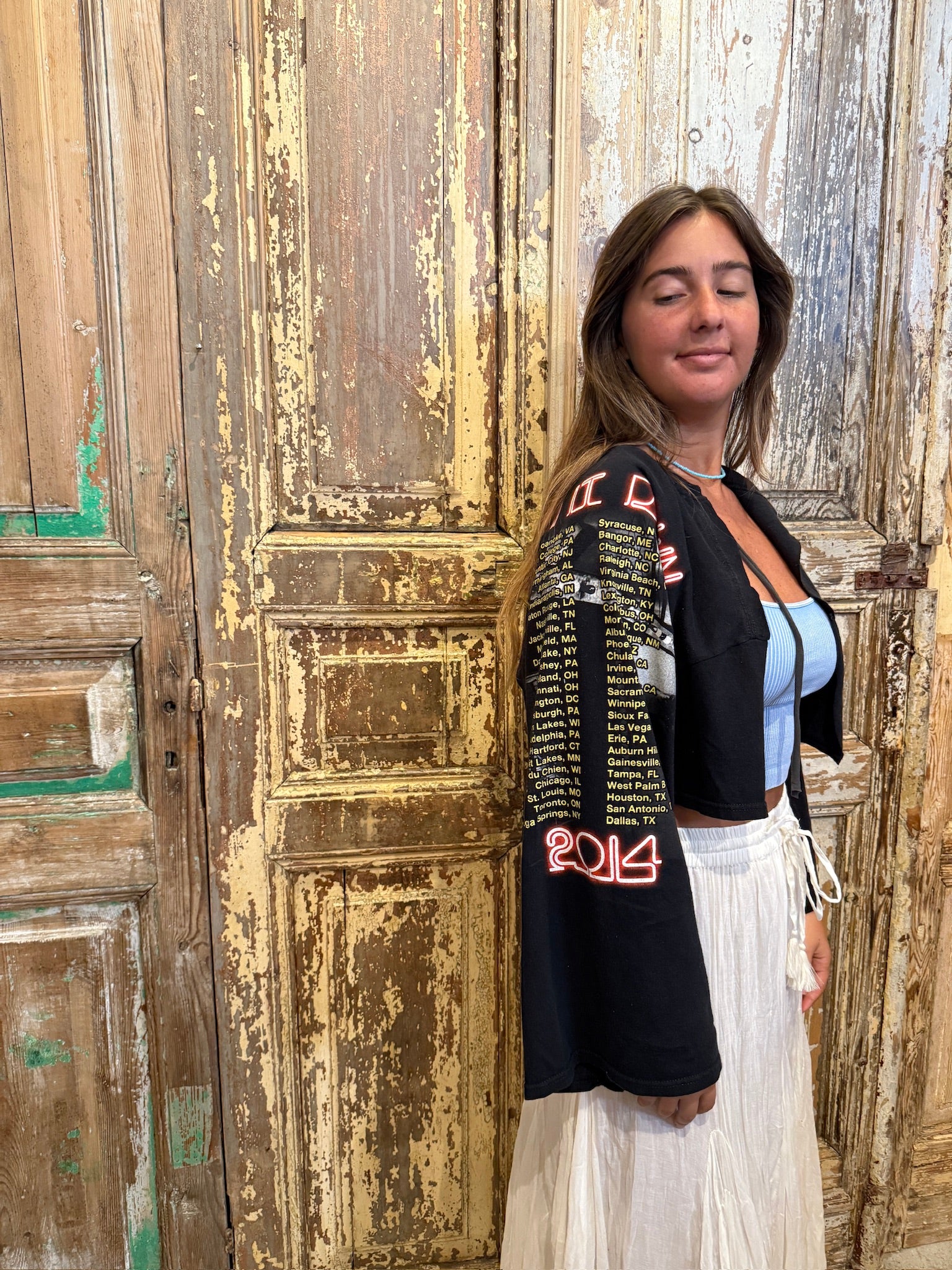 Get the best of both worlds with our Up Cycled Rockband Cropped Jacket! Made from up cycled vintage rockband tees, each one is unique, super soft and has flared boho sleeves. Show off your cool, hip style while also being environmentally conscious. And if you want to make it truly one-of-a-kind, order any of our rockband tees you prefer and we will make your your fave band a cropped jacket especially for you (contact our store for more details!)