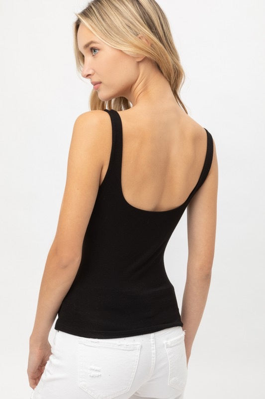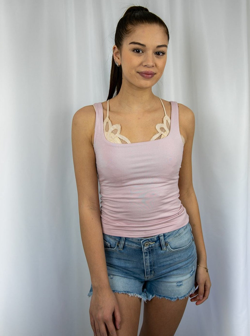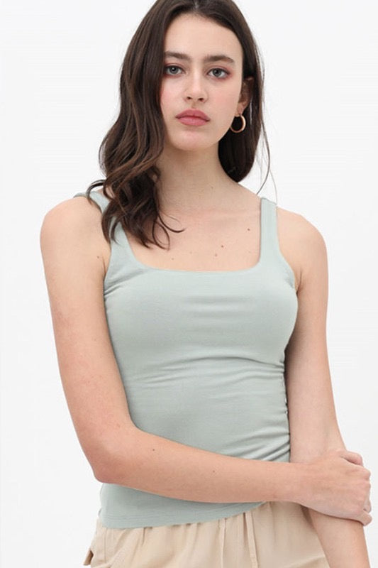Double layered Square Tank is a soft rayon and spandex blend.  Square necklines adds interest to your dé·colle·té and makes your outfit look more interesting.  Great layering piece when you don't want straps to show on a scoopneck.  Looks great with our high waist leggings.
