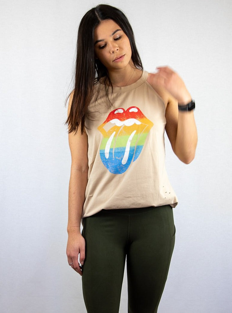 Light distressing & shoulder bearing cute tank.  95% Cotton, 5% Spandex.
