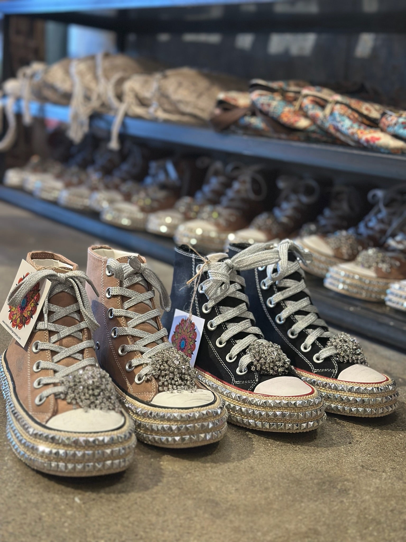Turn up the volume on your style with our Studded Sneaker, the ultimate blend of fierce fashion and everyday comfort. These vibrant high-tops bring a bold twist to a classic look, featuring striking studded detailing and an embellished canvas design that’s made to shine. Whether you’re hitting the streets, heading to a festival, or just vibing around town, these sneakers keep your style loud and proud.