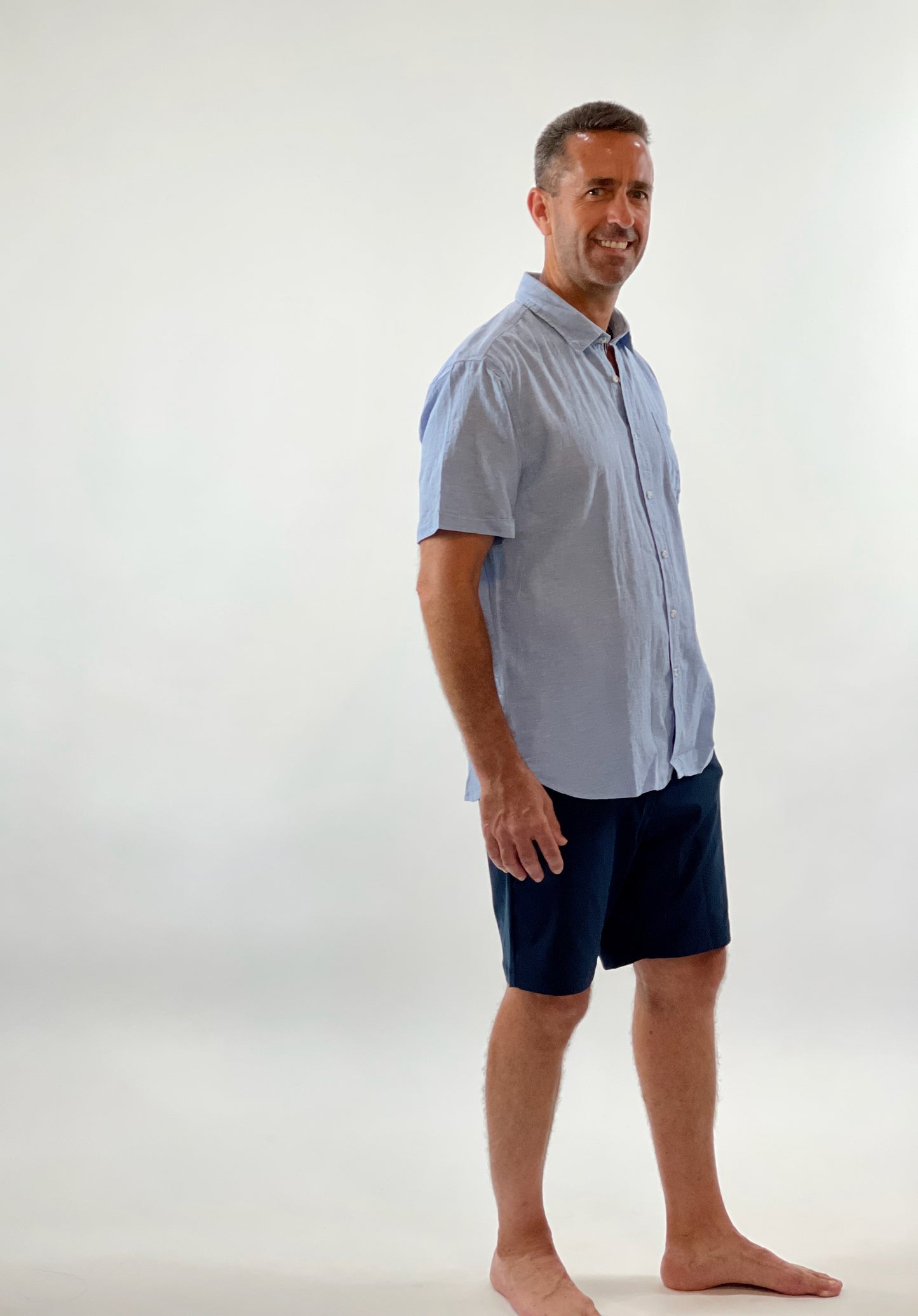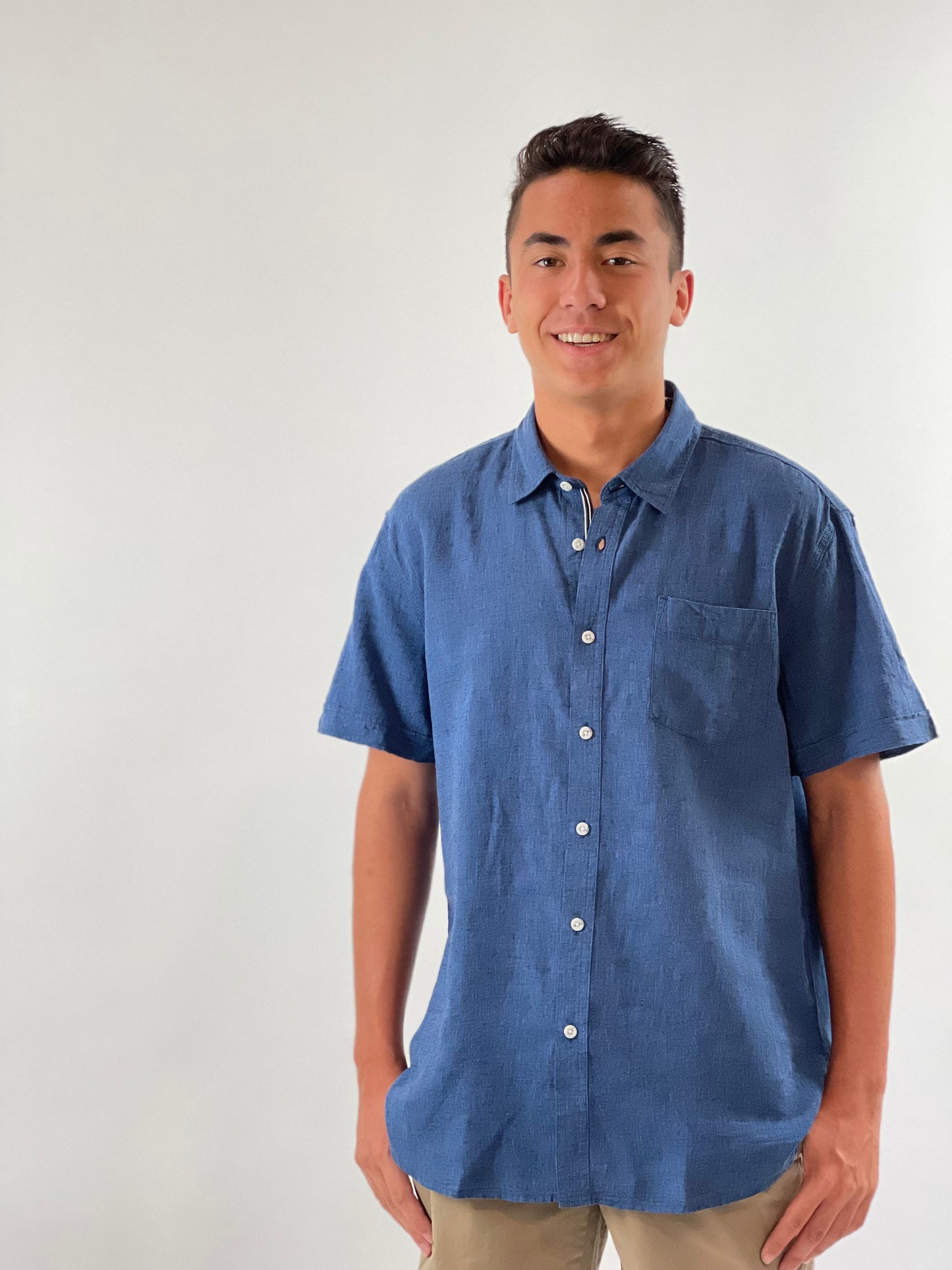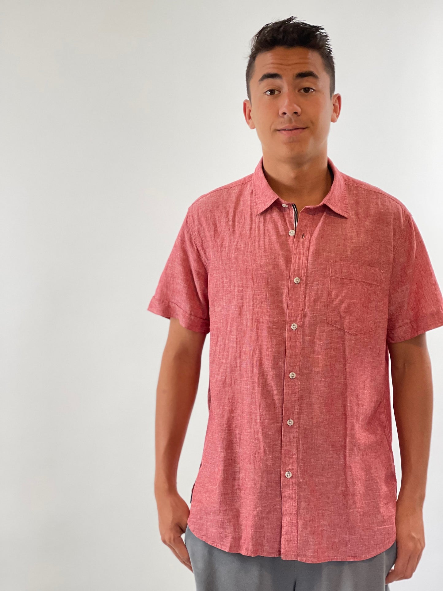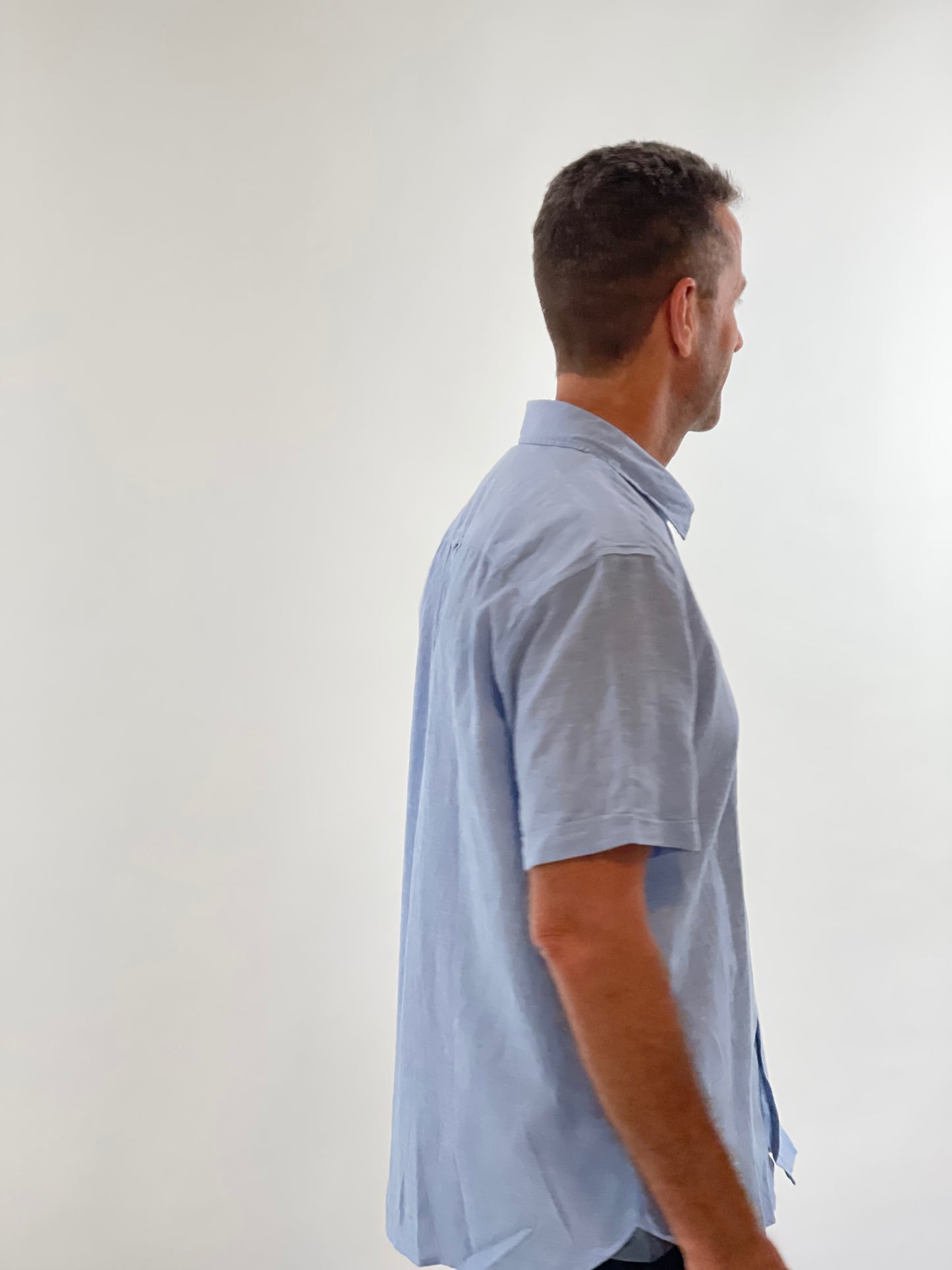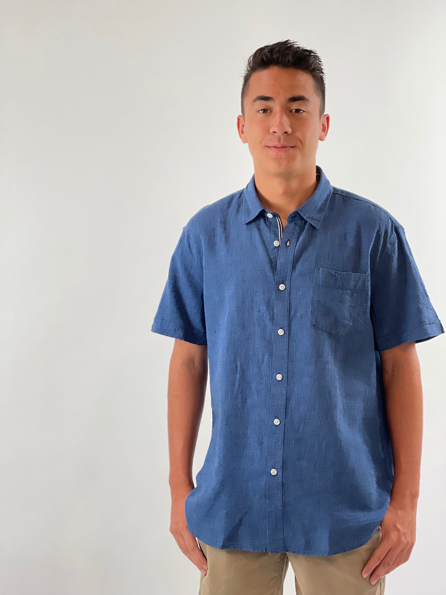 The Kyle Shirt is our softest of all our men's shirts.  This linen cotton blend shirt feels like it's been washed and worn!  Handsome cotton detail in the collar, side hem and front opening.  Recommended hang dry or dry clean.