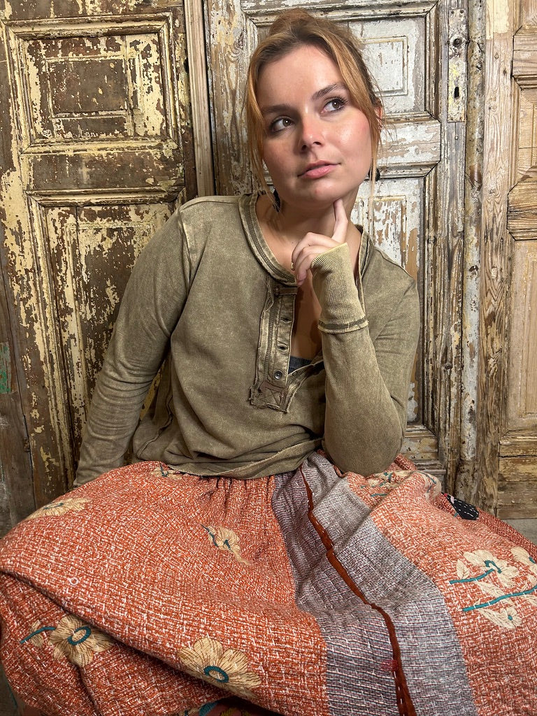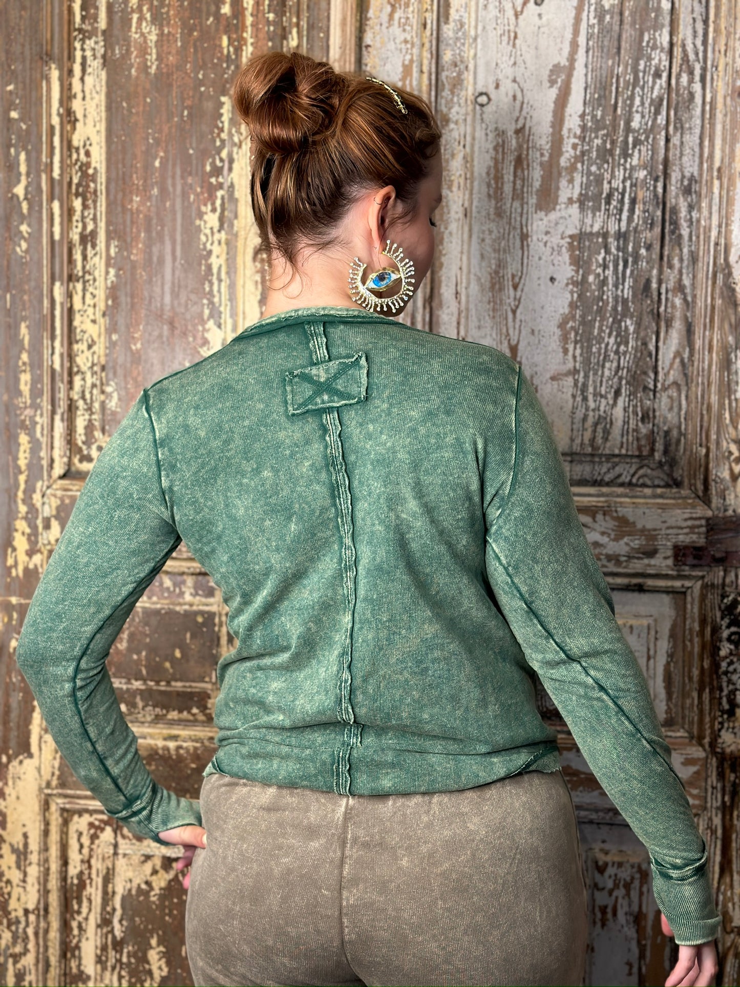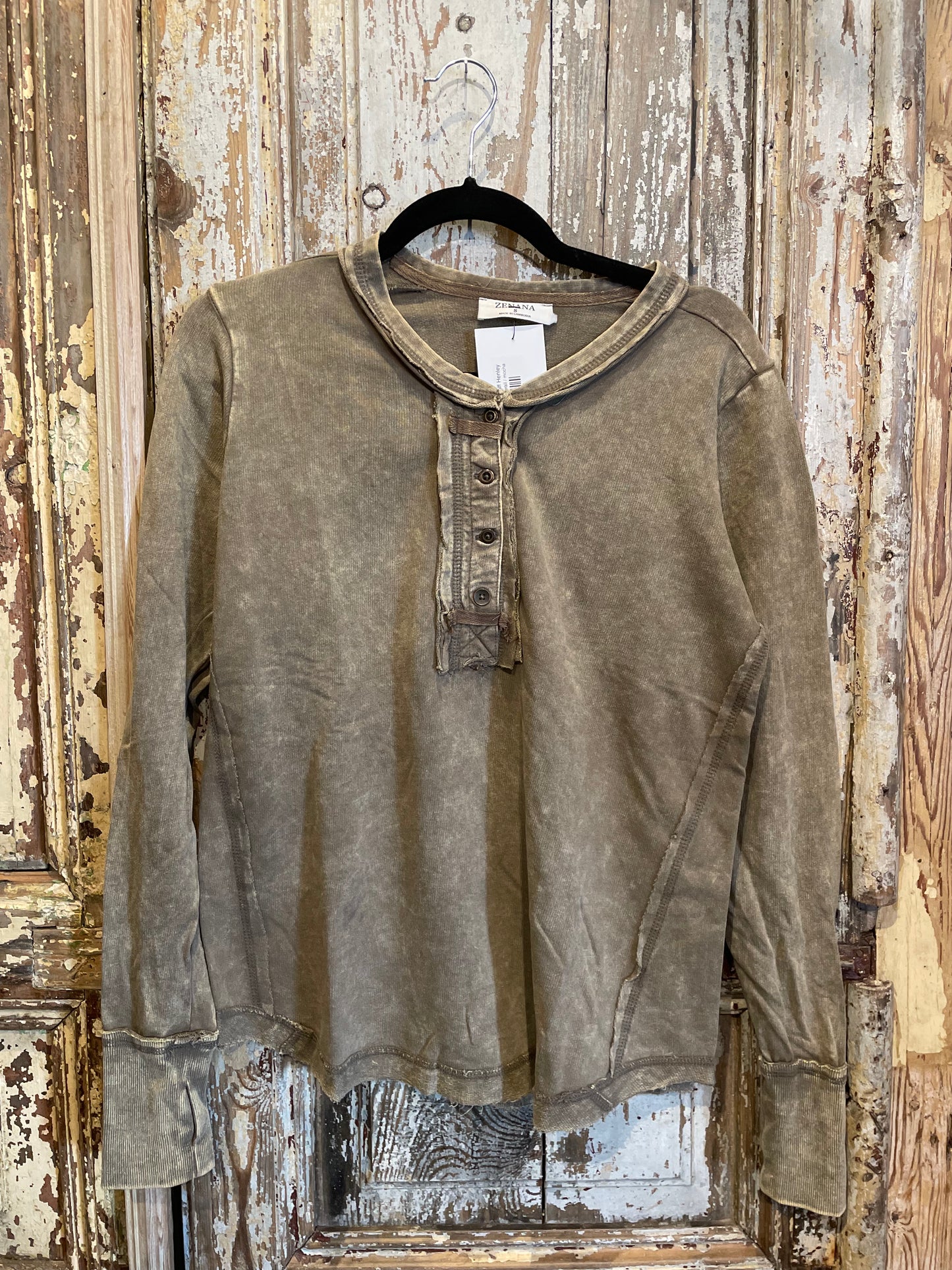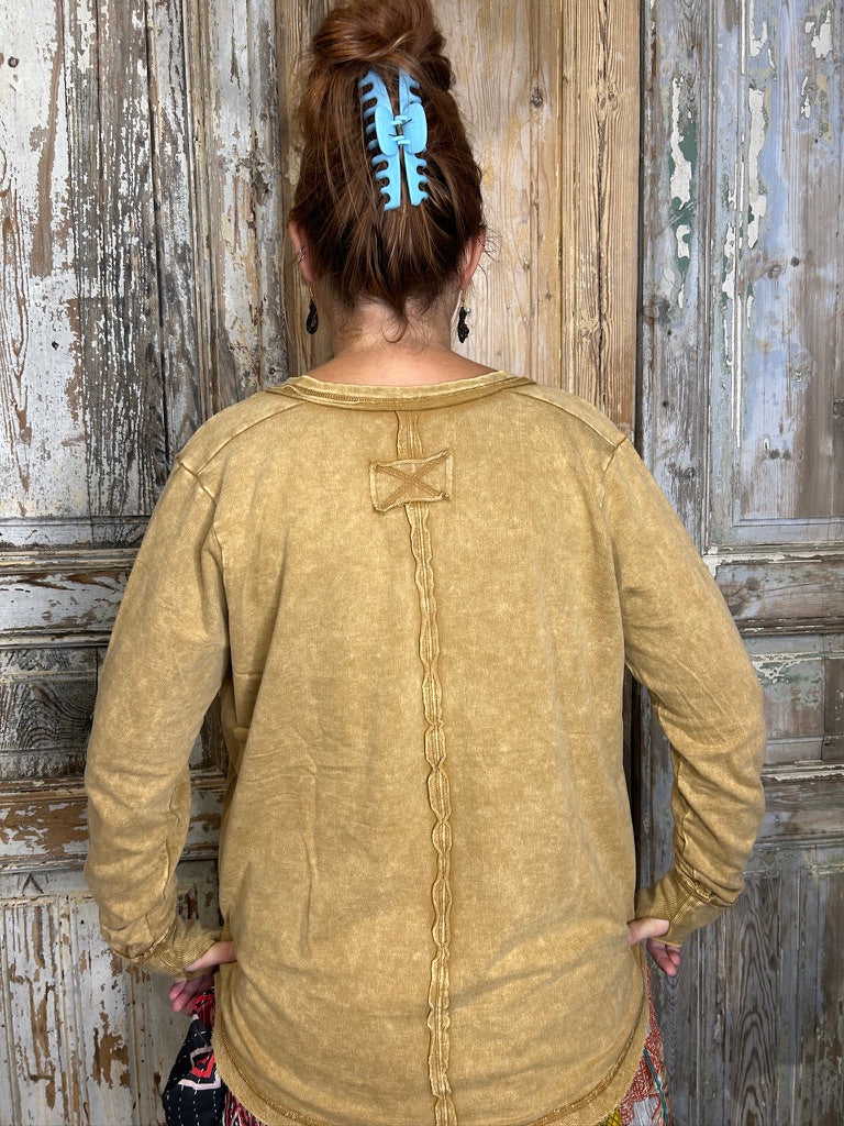 Be casual and stylish with our Thumbhole Cuff Mineral Washed Henley! Its vintage look will make you stand out in a crowd. The thumbhole adds a cool look! Oversized for a modern, fashionable fit. Get ready to rock with our stylish henley!